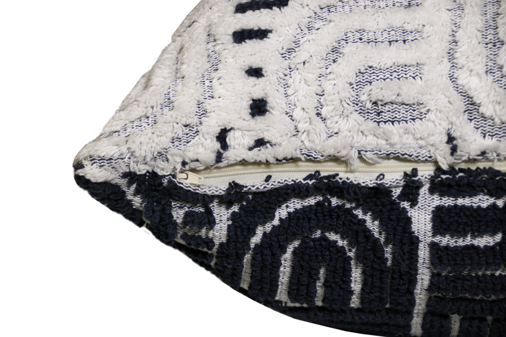 Add an air of fashion to your room and rejuvenate the space with this cute and fashionable 26-inch white and blue floor geometric cotton blend throw pillow cover. This white and blue hued, accent pillow cover, represents quality construction, expertly made from durable cotton blend that is not only long lasting but soft to the touch as well. Pillow covers are a good idea for anyone that loves to decorate or accent their space with color and texture. Combine with your own fill or insert to add decoration and dimension to your favorite chair, accent your sofa, or to use as part of your bed ensemble. 26.00-inch h x 26.00-inch w x 0.25-inch d.