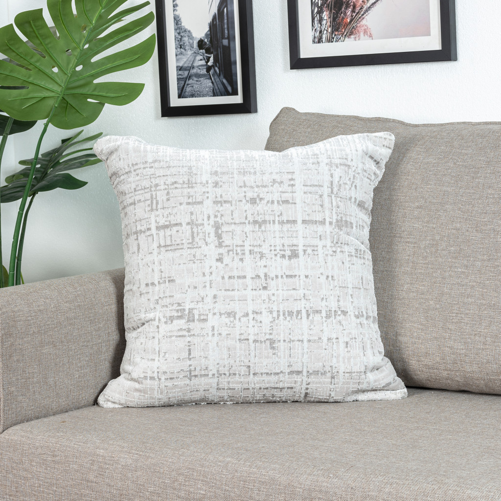 The perfect complement to your sofa, favorite chair, or bed, this 20-inch gray and beige abstract polyester blend throw pillow cover is a great decorative accent. The gray and beige coloring of the extremely durable and long lasting polyester blend pillow cover will add dimension and texture to your space. Decorative pillow covers are a great way to change up the look and feel of your space easily and quickly. Combine with your own fill or insert to add decoration and dimension to your favorite chair, accent your sofa, or to use as part of your bed ensemble. 20.00-inch h x 20.00-inch w x 0.25-inch d.