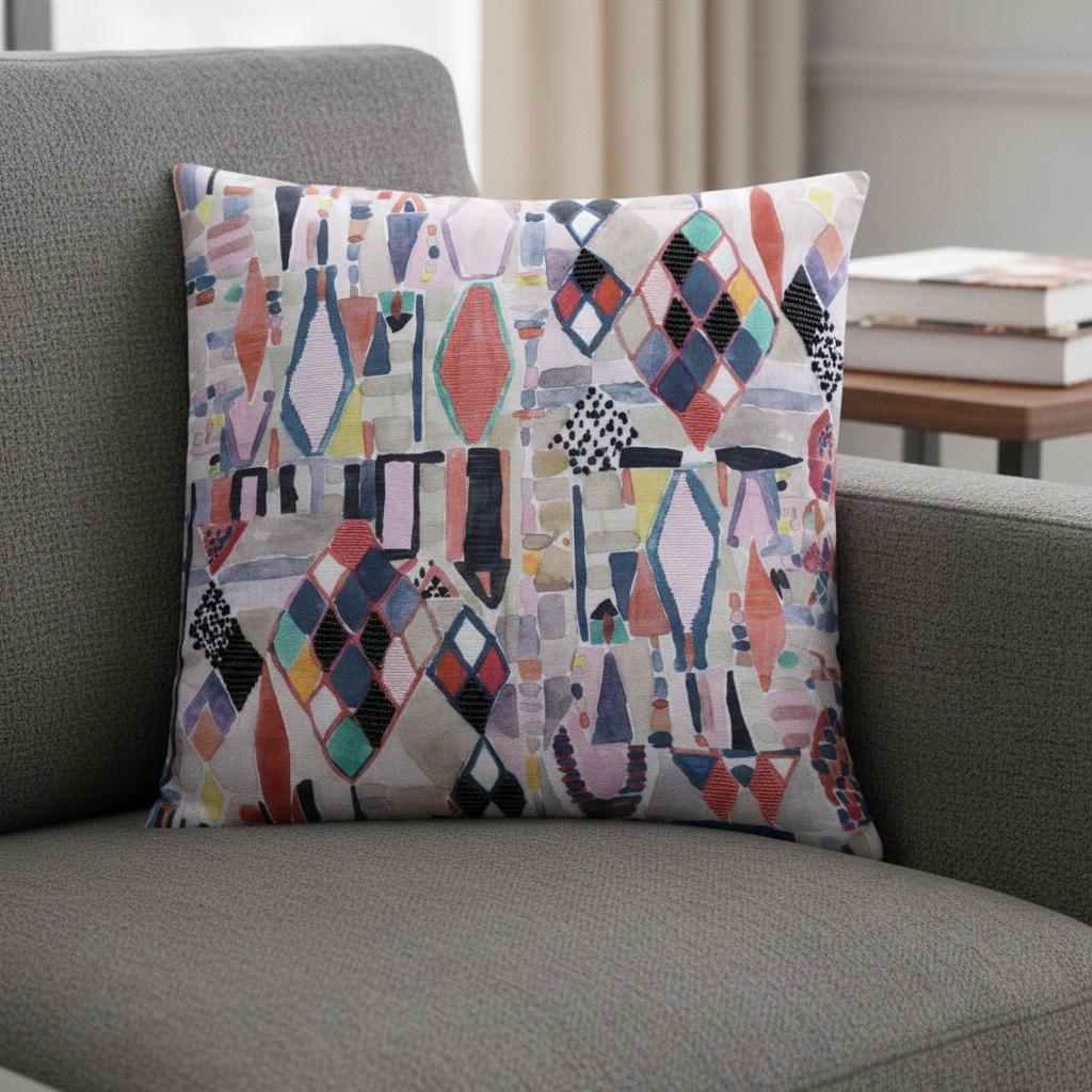 Unique and decorative, this comfortable 20-inch gray blue and red abstract throw pillow cover will leave a lasting impression. This gray, blue, and red colored decorative pillow cover is made from high grade polyester that is durable and long lasting. Decorative pillow covers are a great way to change up the look and feel of your space easily and quickly. Combine with your own fill or insert to add decoration and dimension to your favorite chair, accent your sofa, or to use as part of your bed ensemble. 20.00-inch h x 20.00-inch w x 0.25-inch d.