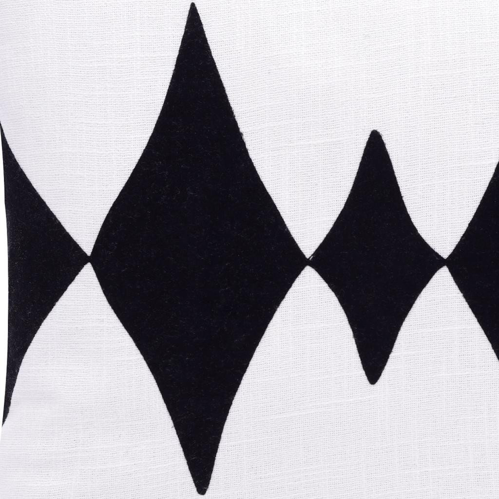 Bring a bit of fashion and zip to your space with this eye-catching and comfy 20-inch black and white diamond cotton blend throw pillow cover. This black and white hued, accent pillow cover, represents quality construction, expertly made from durable cotton blend that is not only long lasting but soft to the touch as well. Decorative pillow covers are a great way to change up the look and feel of your space easily and quickly. Combine with your own fill or insert to add decoration and dimension to your favorite chair, accent your sofa, or to use as part of your bed ensemble. 20.00-inch h x 20.00-inch w x 0.25-inch d.