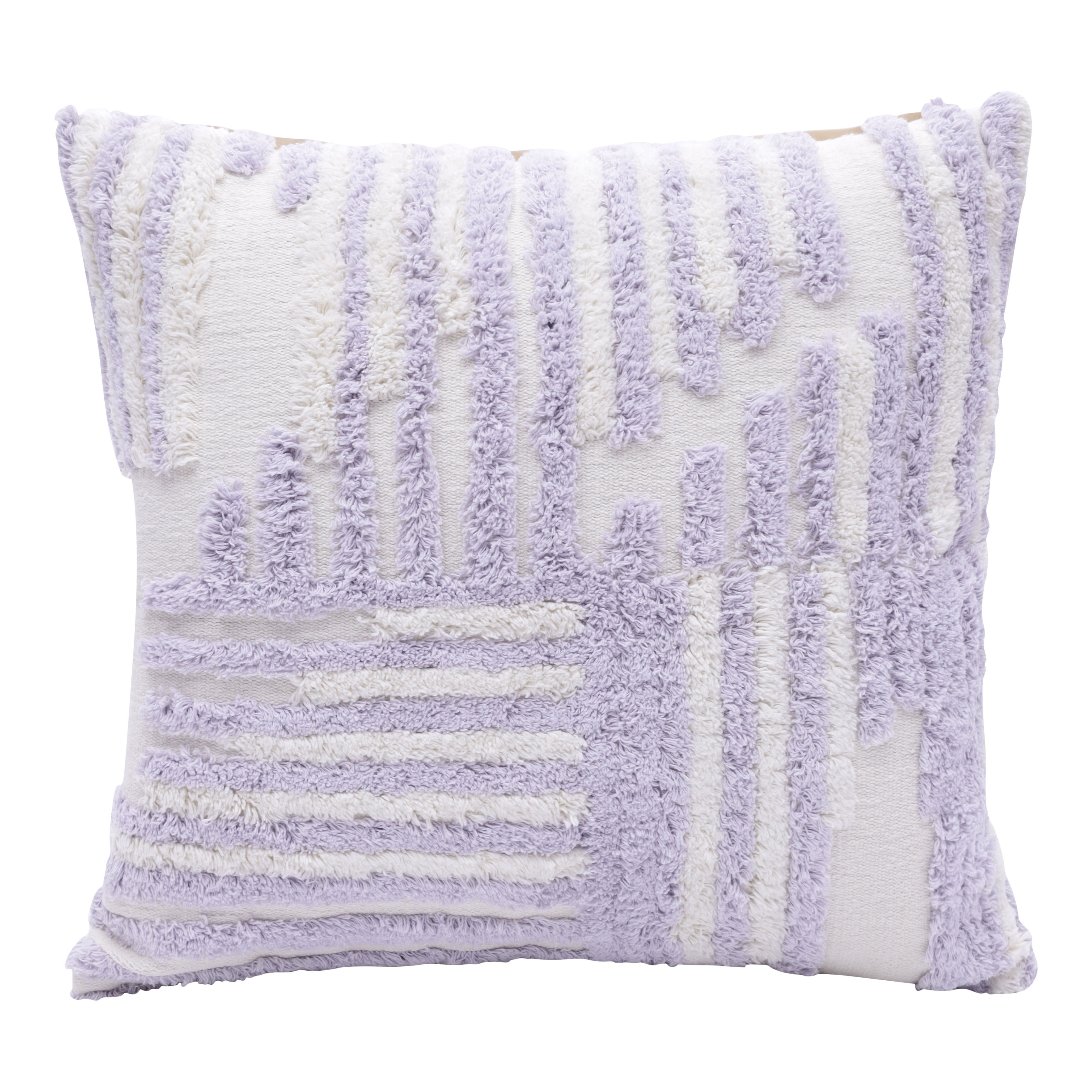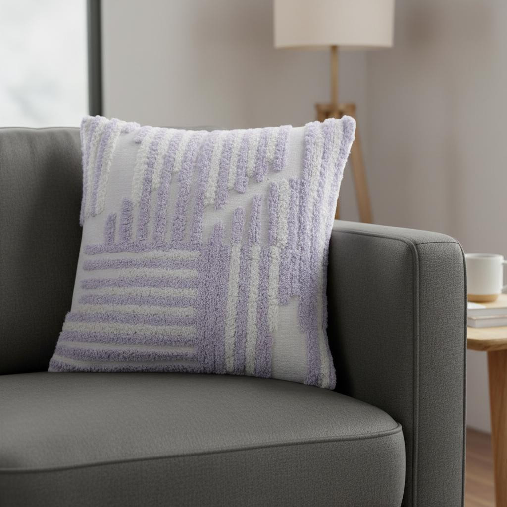 The 22-inch lilac and white geometric cotton throw pillow cover with tufts is the perfect decorative accessory for your home. Durable lilac and white cotton has been used to give this pillow cover a beautiful look that will stand the test of time. Charming decorative tufts give this design texture along with a hand-crafted look and feel. Decorative pillow covers are a great way to change up the look and feel of your space easily and quickly. Combine with your own fill or insert to add decoration and dimension to your favorite chair, accent your sofa, or to use as part of your bed ensemble. 22.00-inch h x 22.00-inch w x 0.25-inch d.