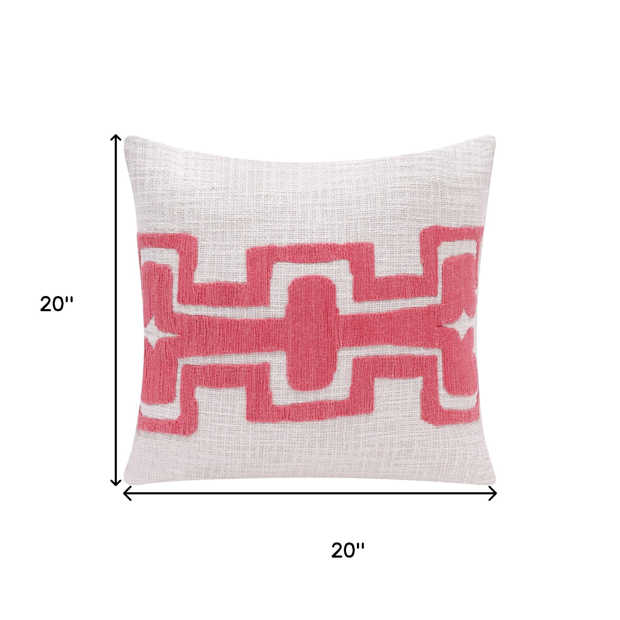 The 20-inch coral and ivory geometric cotton blend throw pillow cover is the perfect decorative accessory for your home. This coral and ivory colored decorative pillow cover is made from high grade cotton blend that is durable and long lasting. Decorative pillow covers are a great way to change up the look and feel of your space easily and quickly. Combine with your own fill or insert to add decoration and dimension to your favorite chair, accent your sofa, or to use as part of your bed ensemble. 20.00-inch h x 20.00-inch w x 0.25-inch d.