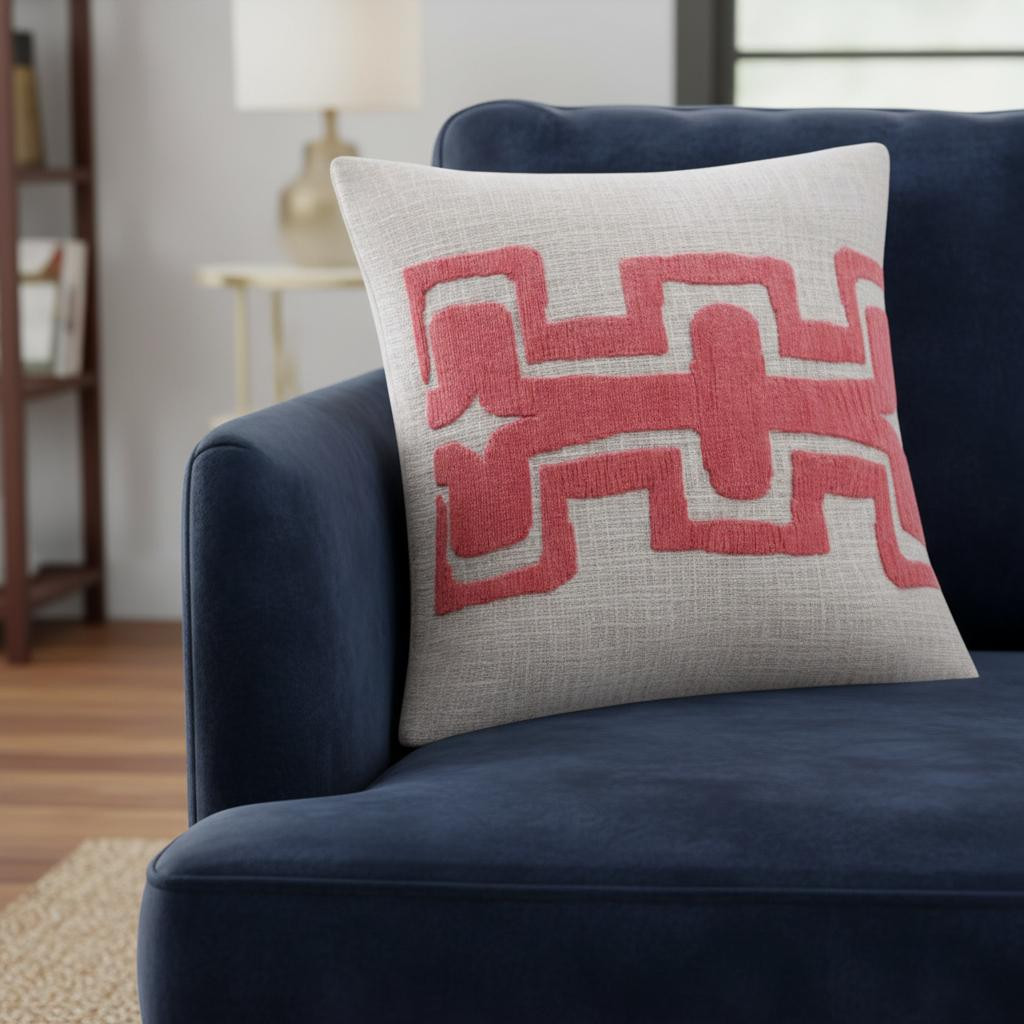 cotton blend throw pillow cover, blend throw pillow cover, geometric cotton blend throw pillow, cotton blend throw pillow, 20" coral ivory geometric cotton |