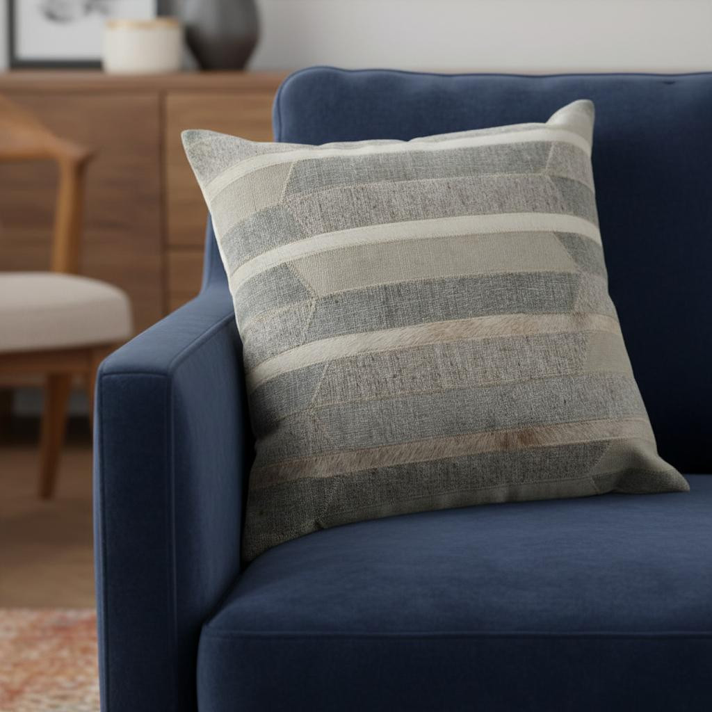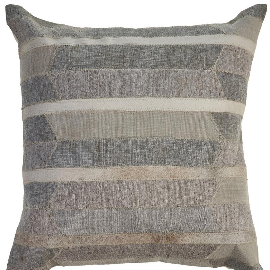 The 20-inch gray and tan striped faux leather throw pillow cover is the perfect decorative accessory for your home. Durable gray and tan faux leather has been used to give this pillow cover a beautiful look that will stand the test of time. Decorative pillow covers are a great way to change up the look and feel of your space easily and quickly. Combine with your own fill or insert to add decoration and dimension to your favorite chair, accent your sofa, or to use as part of your bed ensemble. 20.00-inch h x 20.00-inch w x 0.50-inch d.