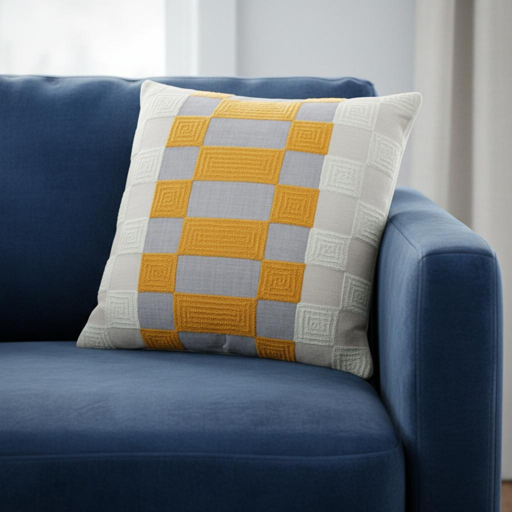 The perfect complement to your sofa, favorite chair, or bed, this 20-inch gray yellow and white check throw pillow cover is a great decorative accent. This soft and durable decorative pillow cover is expertly made of high grade, long lasting polyester in a gray, yellow, and white coloration. Pillow covers are a good idea for anyone that loves to decorate or accent their space with color and texture. Combine with your own fill or insert to add decoration and dimension to your favorite chair, accent your sofa, or to use as part of your bed ensemble. 20.00-inch h x 20.00-inch w x 0.25-inch d.