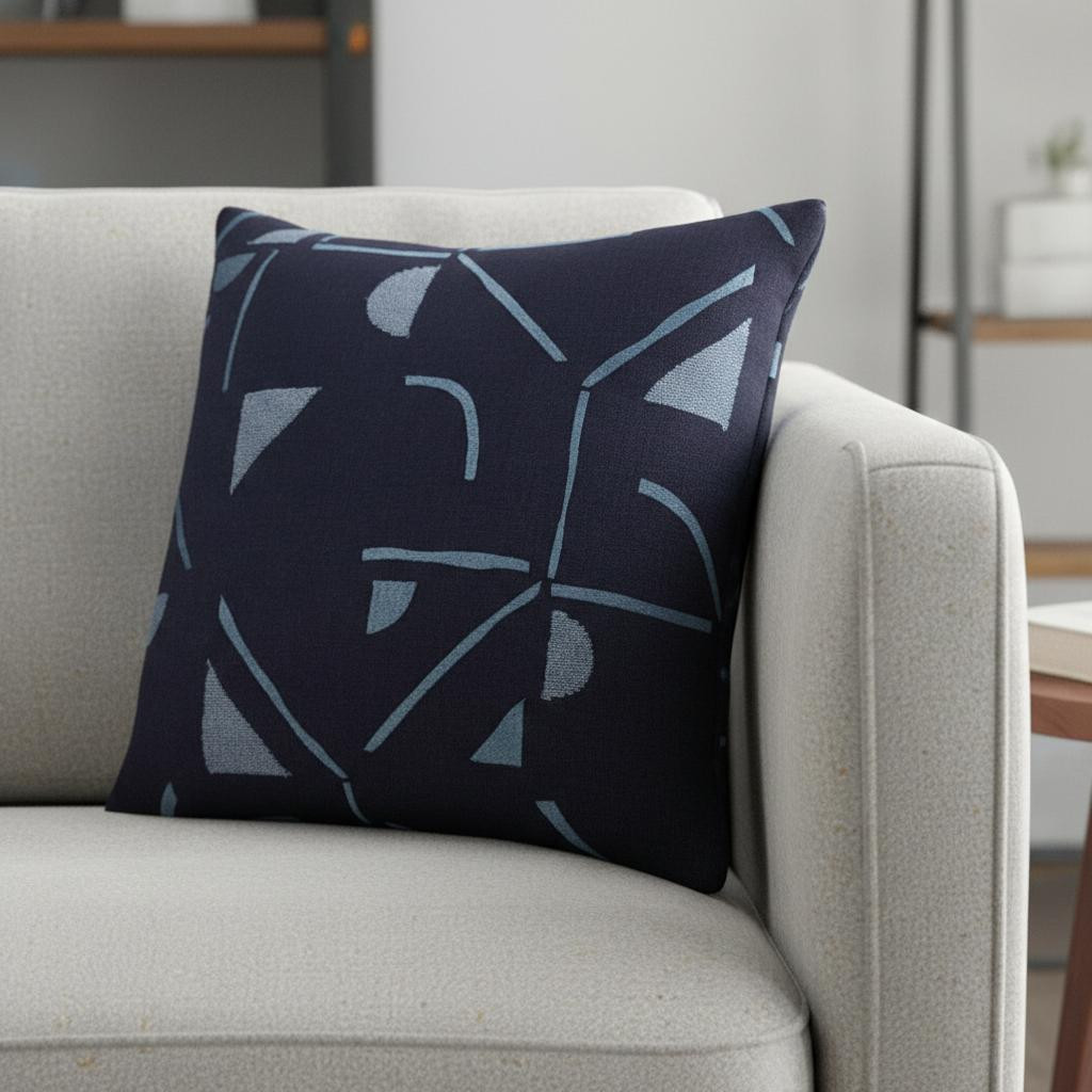 cotton blend throw pillow cover, blend throw pillow cover, cotton blend throw pillow, geometric cotton blend throw pillow, 20" ash gray denim blue |