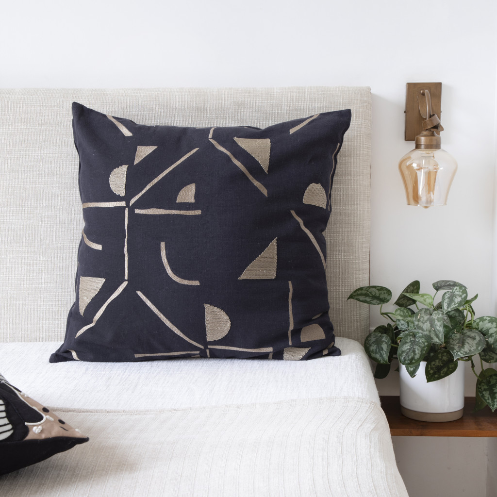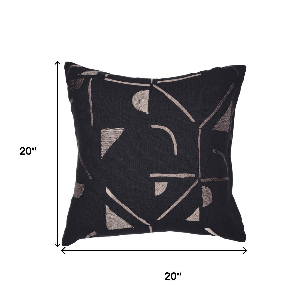 The 20-inch black and beige geometric cotton blend throw pillow cover is the perfect decorative accessory for your home. Durable black and beige cotton blend has been used to give this pillow cover a beautiful look that will stand the test of time. Decorative pillow covers are a great way to change up the look and feel of your space easily and quickly. Combine with your own fill or insert to add decoration and dimension to your favorite chair, accent your sofa, or to use as part of your bed ensemble. 20.00-inch h x 20.00-inch w x 0.25-inch d.