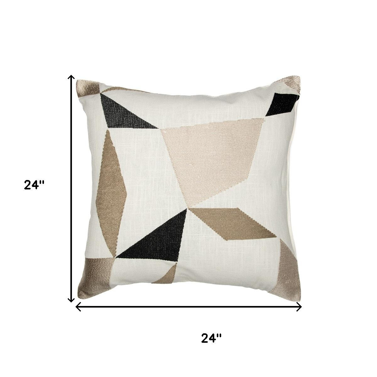 Unique and decorative, this comfortable 24-inch ivory and taupe geometric cotton blend throw pillow cover will leave a lasting impression. This soft and durable decorative pillow cover is expertly made of high grade, long lasting cotton blend in a ivory and taupe coloration. Pillow covers are a good idea for anyone that loves to decorate or accent their space with color and texture. Combine with your own fill or insert to add decoration and dimension to your favorite chair, accent your sofa, or to use as part of your bed ensemble. 24.00-inch h x 24.00-inch w x 0.25-inch d.