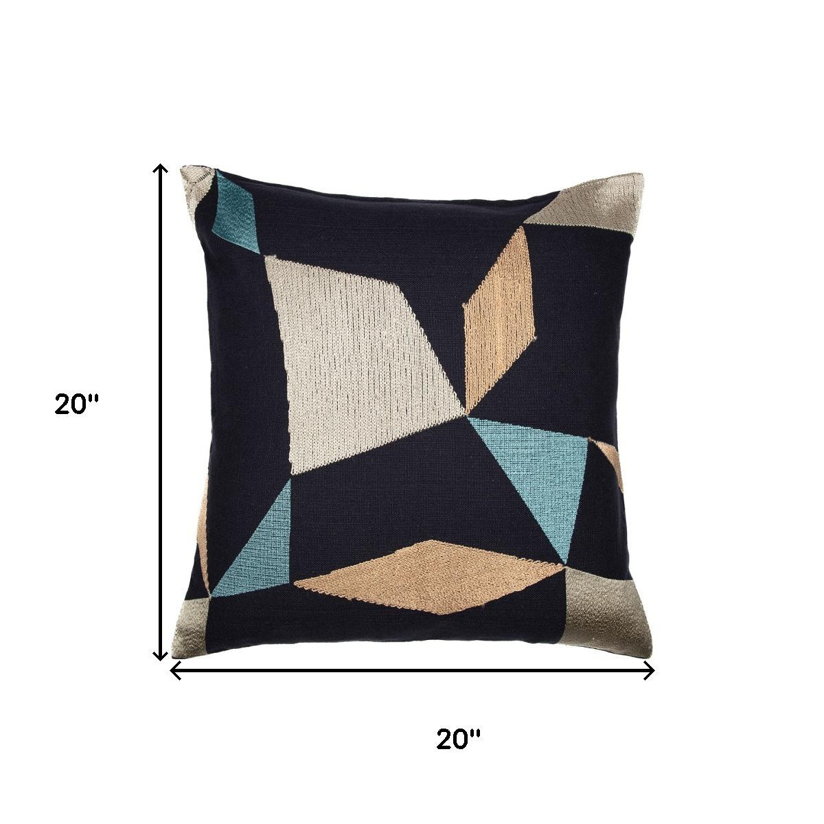 The perfect complement to your sofa, favorite chair, or bed, this 20-inch denim blue and beige geometric cotton blend throw pillow cover is a great decorative accent. This denim blue and beige colored decorative pillow cover is made from high grade cotton blend that is durable and long lasting. Decorative pillow covers are a great way to change up the look and feel of your space easily and quickly. Combine with your own fill or insert to add decoration and dimension to your favorite chair, accent your sofa, or to use as part of your bed ensemble. 20.00-inch h x 20.00-inch w x 0.25-inch d.