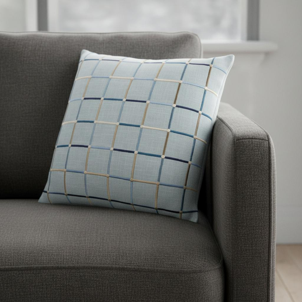 cotton blend throw pillow cover, blend throw pillow cover, light blue ivory check cotton, check cotton blend throw pillow, 20" light blue ivory |