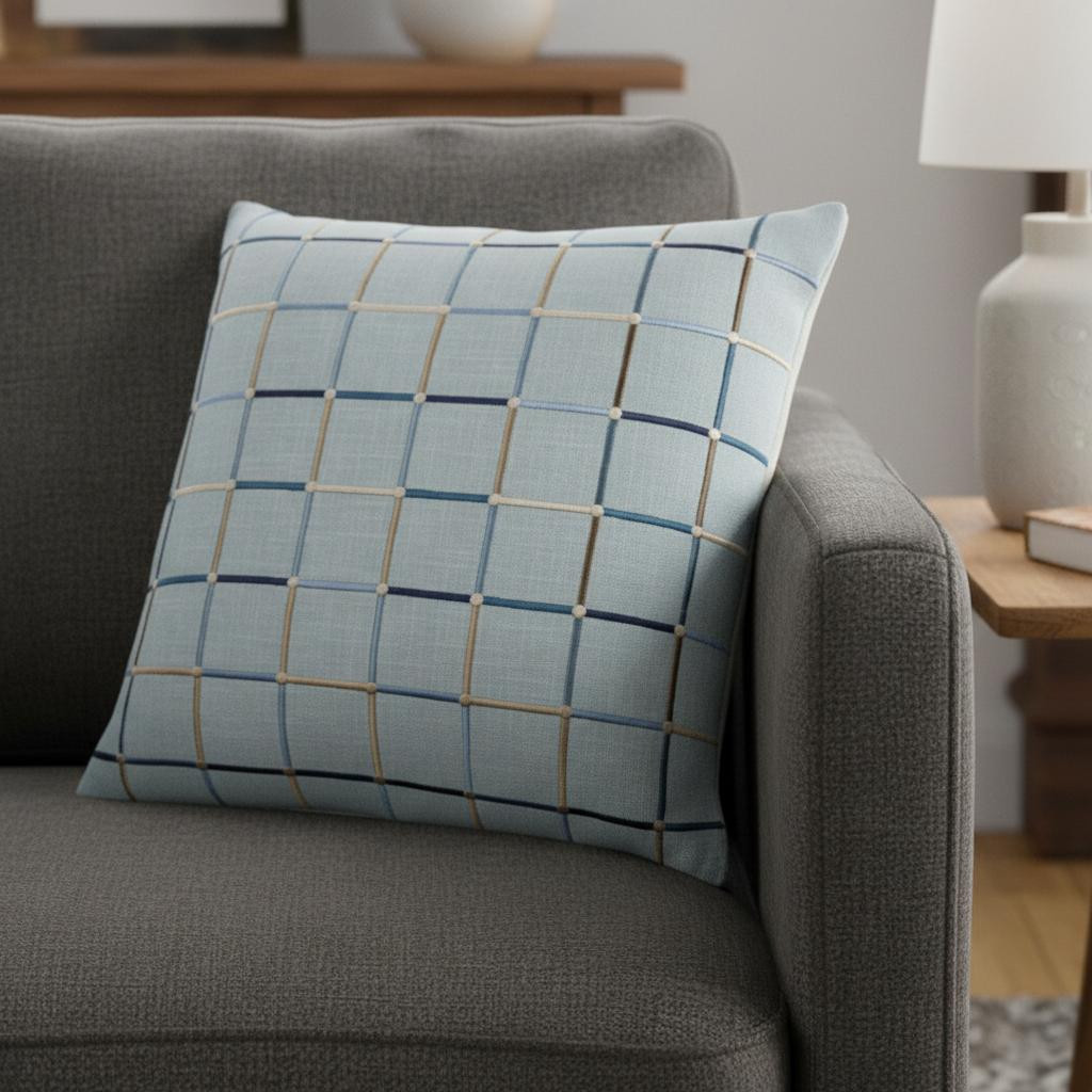 cotton blend throw pillow cover, blend throw pillow cover, light blue ivory check cotton, check cotton blend throw pillow, 24" light blue ivory |
