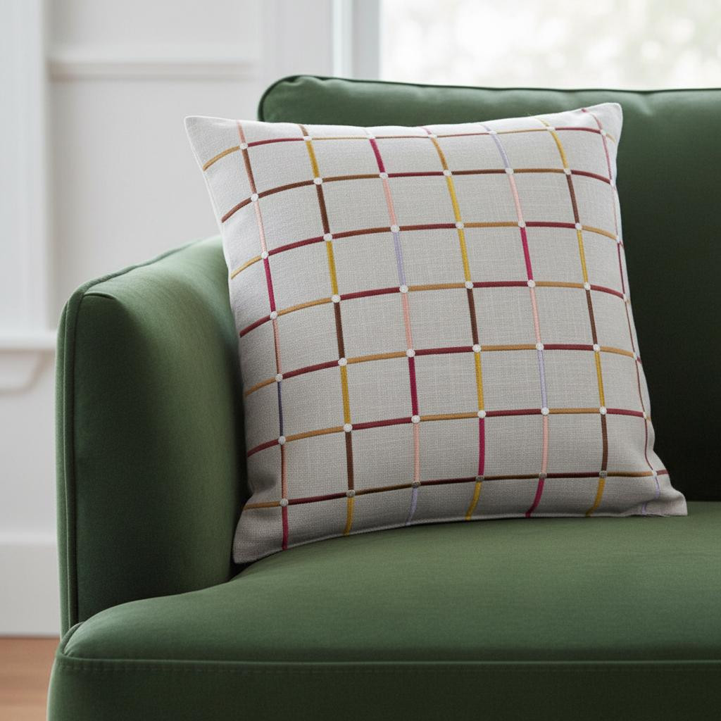 cotton blend throw pillow cover, blend throw pillow cover, check cotton blend throw pillow, throw pillow cover, cream brown pink check cotton |