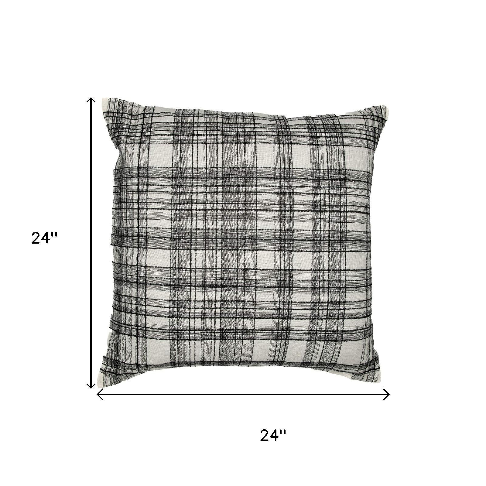 This 24-inch white and black check cotton blend throw pillow cover will add a beautiful decorative accent to your decor. This white and black colored decorative pillow cover is made from high grade cotton blend that is durable and long lasting. Decorative pillow covers are a great way to change up the look and feel of your space easily and quickly. Combine with your own fill or insert to add decoration and dimension to your favorite chair, accent your sofa, or to use as part of your bed ensemble. 24.00-inch h x 24.00-inch w x 0.25-inch d.