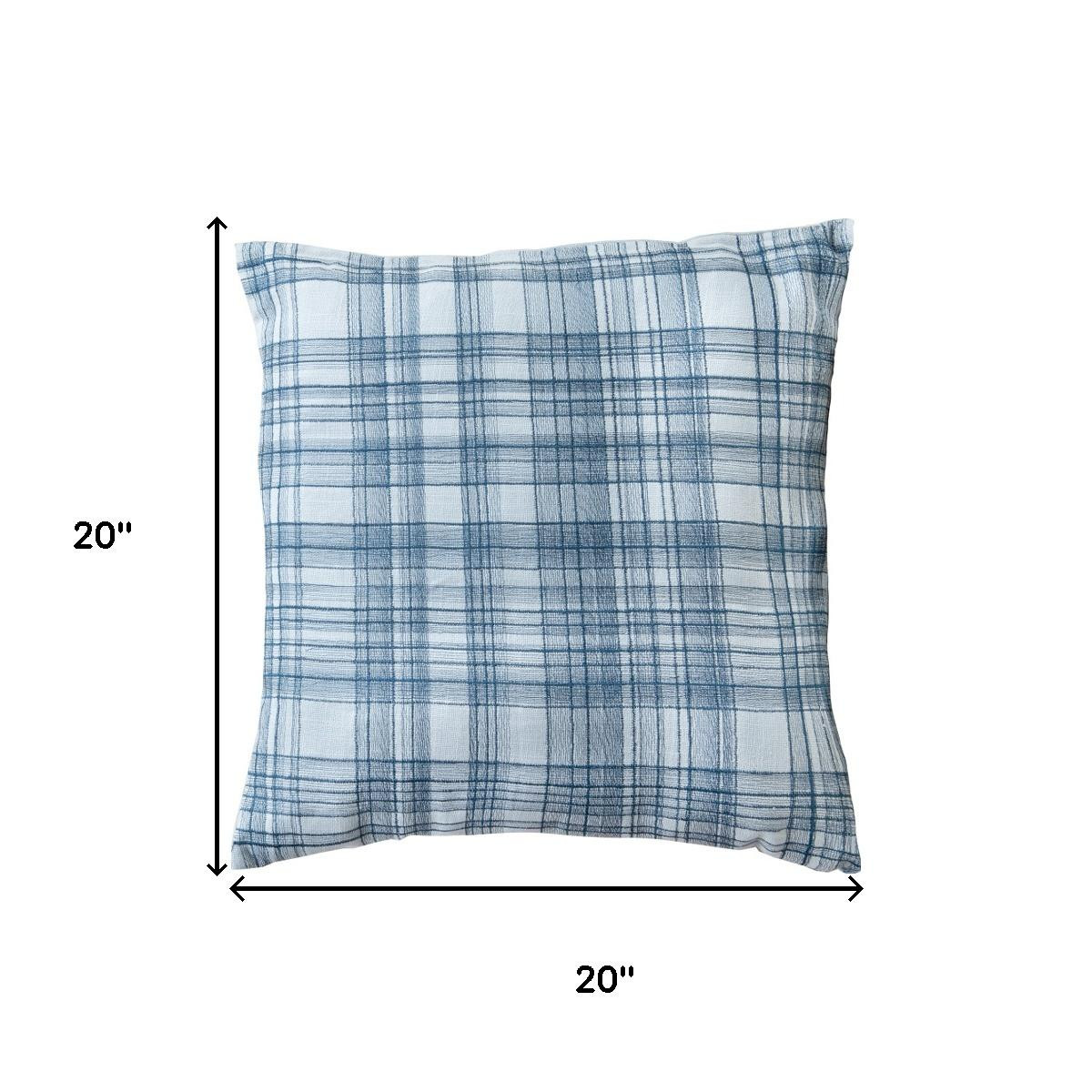 Unique and decorative, this comfortable 20-inch blue and indigo check cotton blend throw pillow cover will leave a lasting impression. Durable blue and indigo cotton blend has been used to give this pillow cover a beautiful look that will stand the test of time. Decorative pillow covers are a great way to change up the look and feel of your space easily and quickly. Combine with your own fill or insert to add decoration and dimension to your favorite chair, accent your sofa, or to use as part of your bed ensemble. 20.00-inch h x 20.00-inch w x 0.25-inch d.