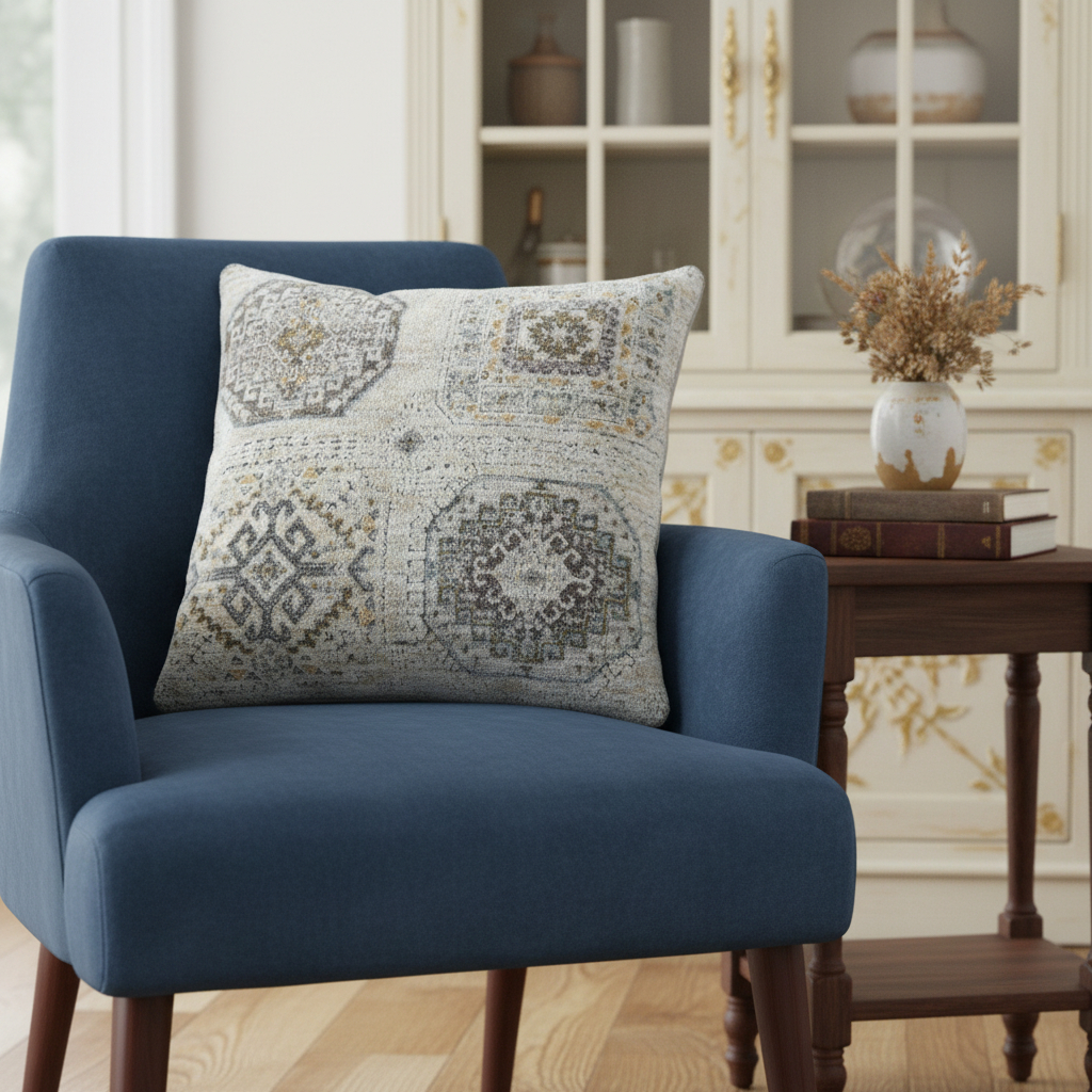 This 20-inch light gray and ivory medallion throw pillow cover will add a beautiful decorative accent to your decor. The light gray and ivory coloring of the extremely durable and long lasting polyester pillow cover will add dimension and texture to your space. Decorative pillow covers are a great way to change up the look and feel of your space easily and quickly. Combine with your own fill or insert to add decoration and dimension to your favorite chair, accent your sofa, or to use as part of your bed ensemble. 20.00-inch h x 20.00-inch w x 0.25-inch d.