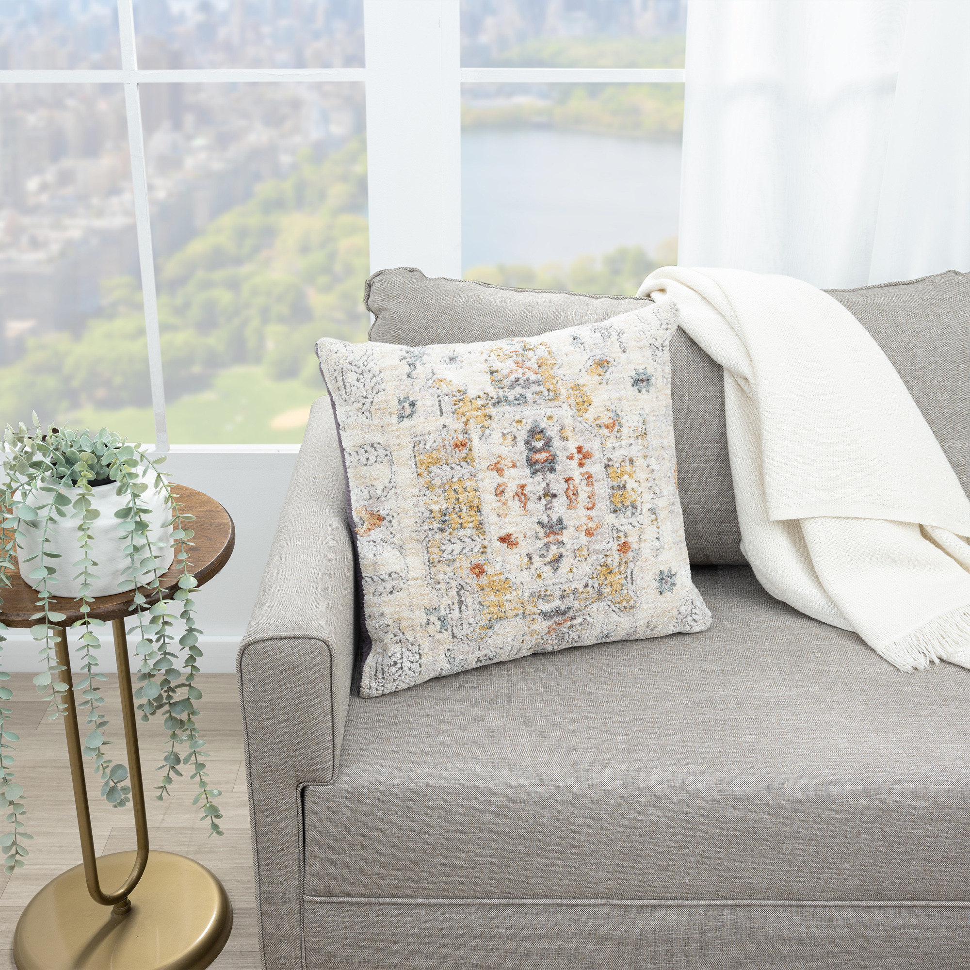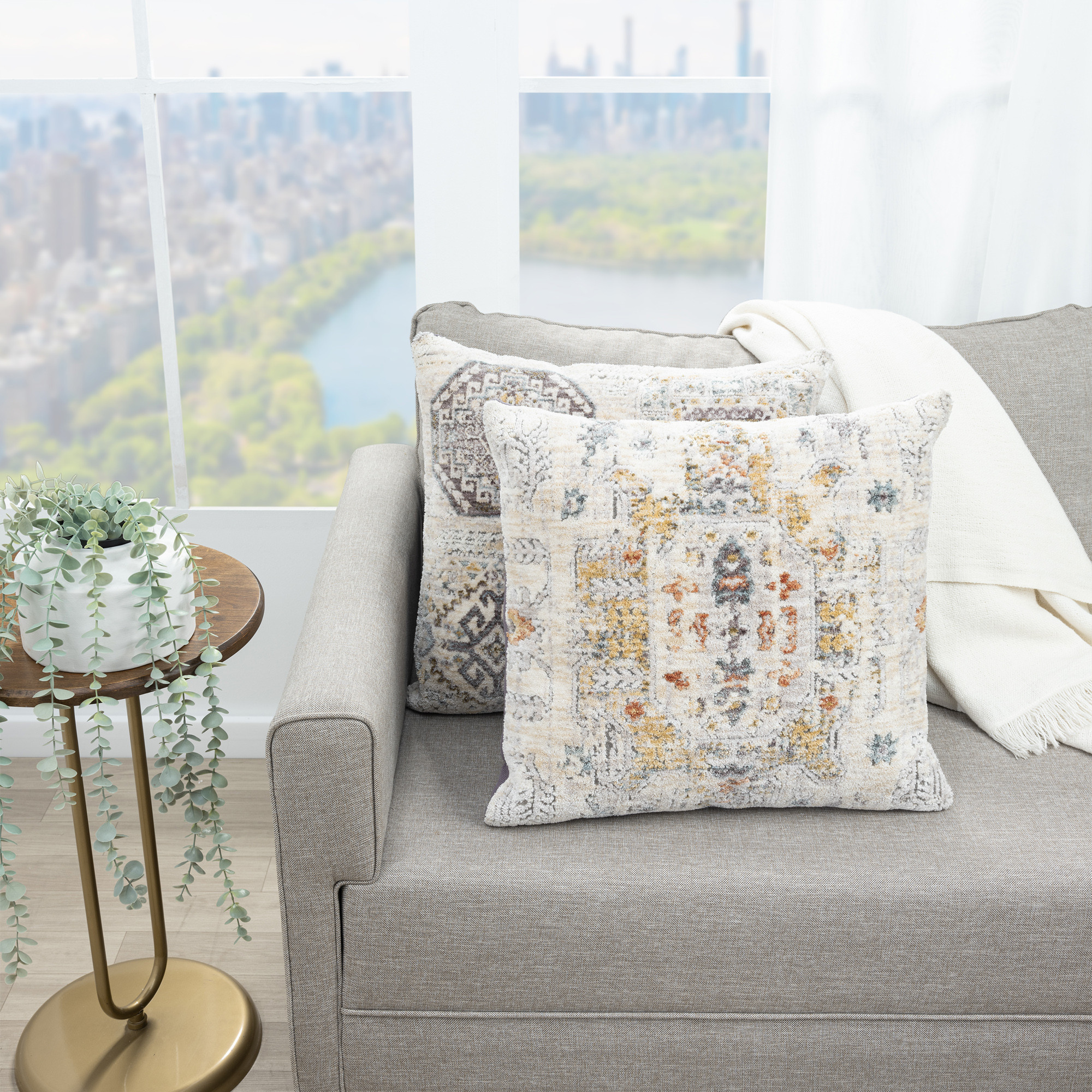 Unique and decorative, this comfortable 20-inch light gray and yellow medallion throw pillow cover will leave a lasting impression. This light gray and yellow hued, accent pillow cover, represents quality construction, expertly made from durable polyester that is not only long lasting but soft to the touch as well. Pillow covers are a good idea for anyone that loves to decorate or accent their space with color and texture. Combine with your own fill or insert to add decoration and dimension to your favorite chair, accent your sofa, or to use as part of your bed ensemble. 20.00-inch h x 20.00-inch w x 0.25-inch d.