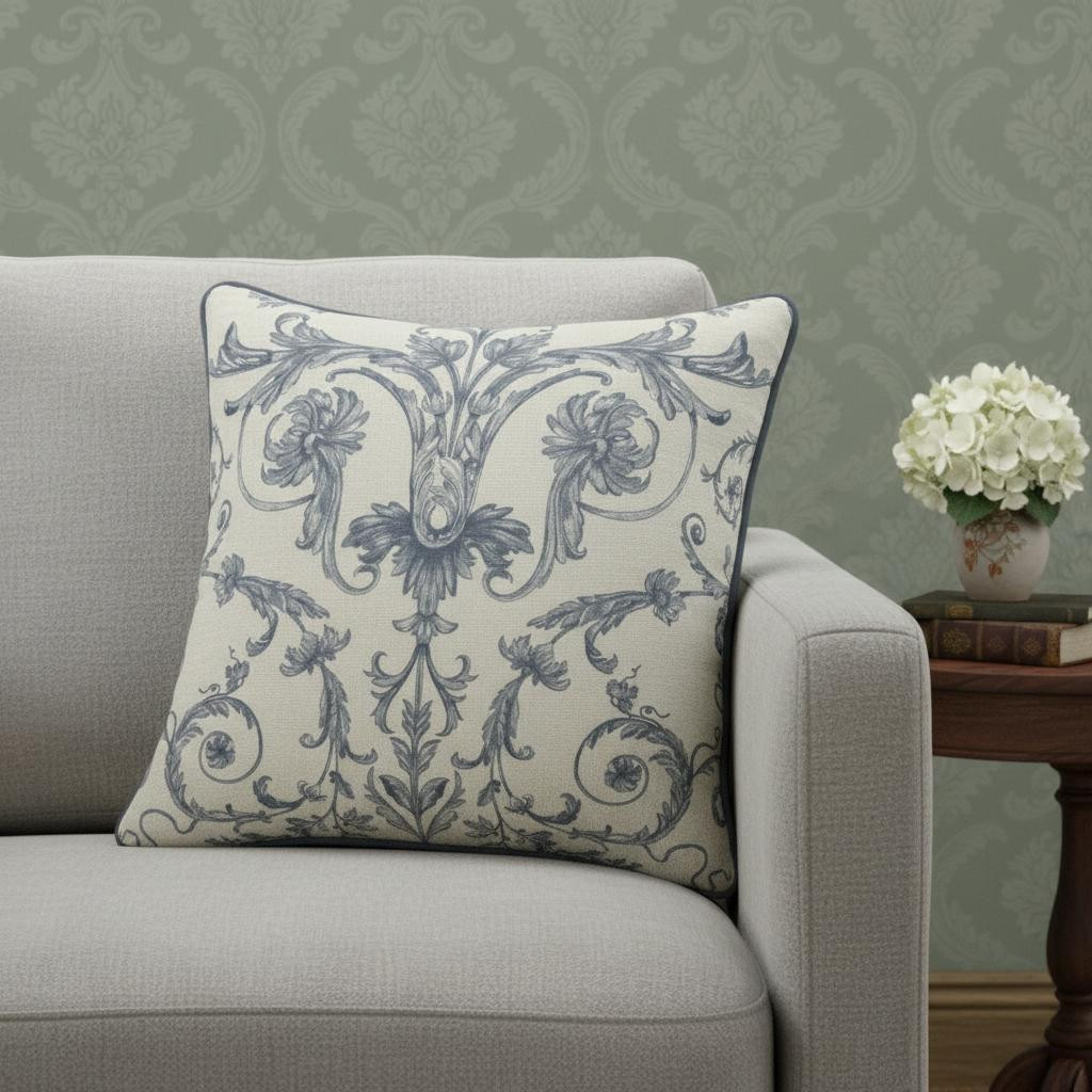 ivory blue damask throw pillow, blue damask throw pillow cover, damask throw pillow cover, throw pillow cover, 20" ivory blue damask |