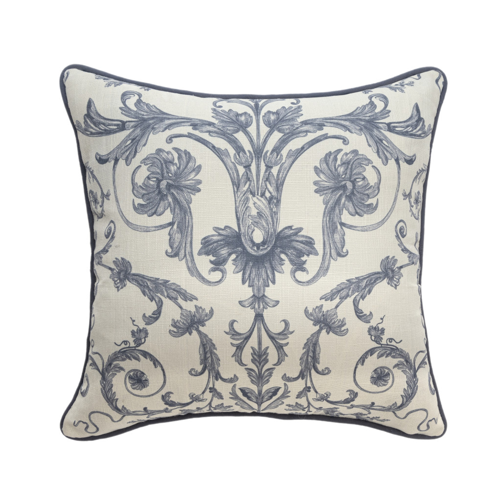 poly linen throw pillow cover, linen throw pillow cover, recycled poly linen throw pillow, poly linen throw pillow, 24" blue ivory damask recycled |