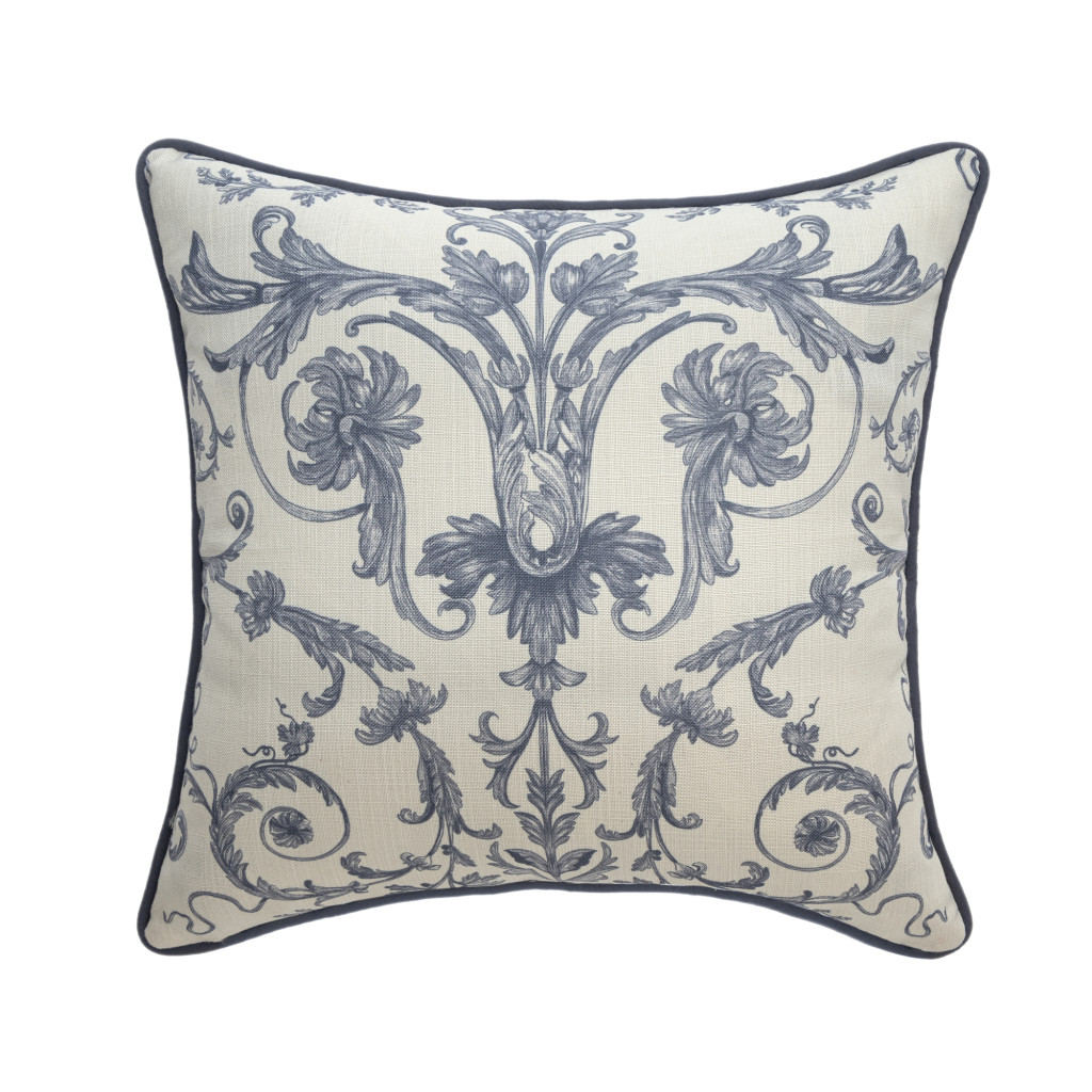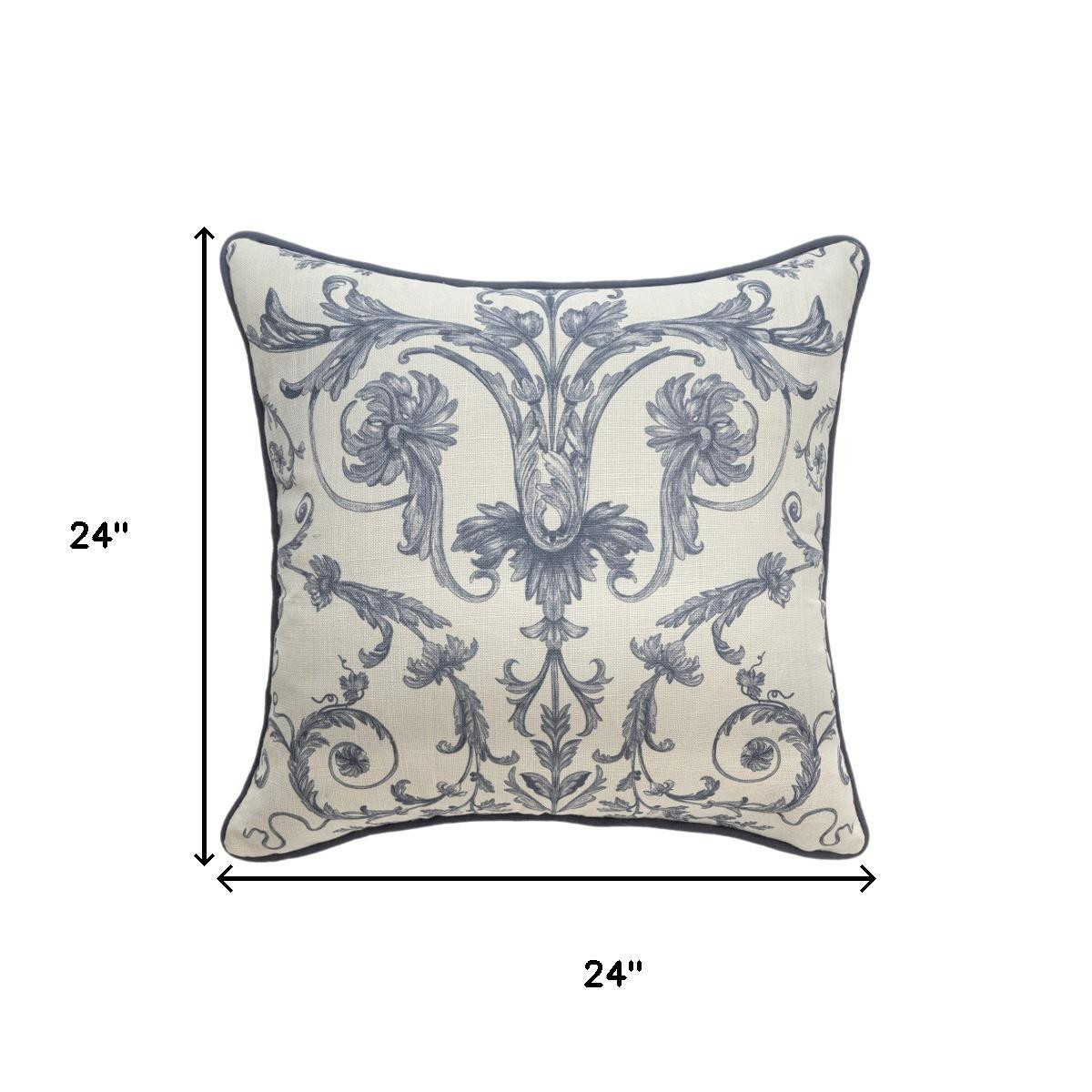 The perfect complement to your sofa, favorite chair, or bed, this 24-inch blue and ivory damask recycled poly linen throw pillow cover is a great decorative accent. The blue and ivory coloring of the extremely durable and long lasting recycled poly linen pillow cover will add dimension and texture to your space. Decorative pillow covers are a great way to change up the look and feel of your space easily and quickly. Combine with your own fill or insert to add decoration and dimension to your favorite chair, accent your sofa, or to use as part of your bed ensemble. 24.00-inch h x 24.00-inch w x 0.25-inch d.