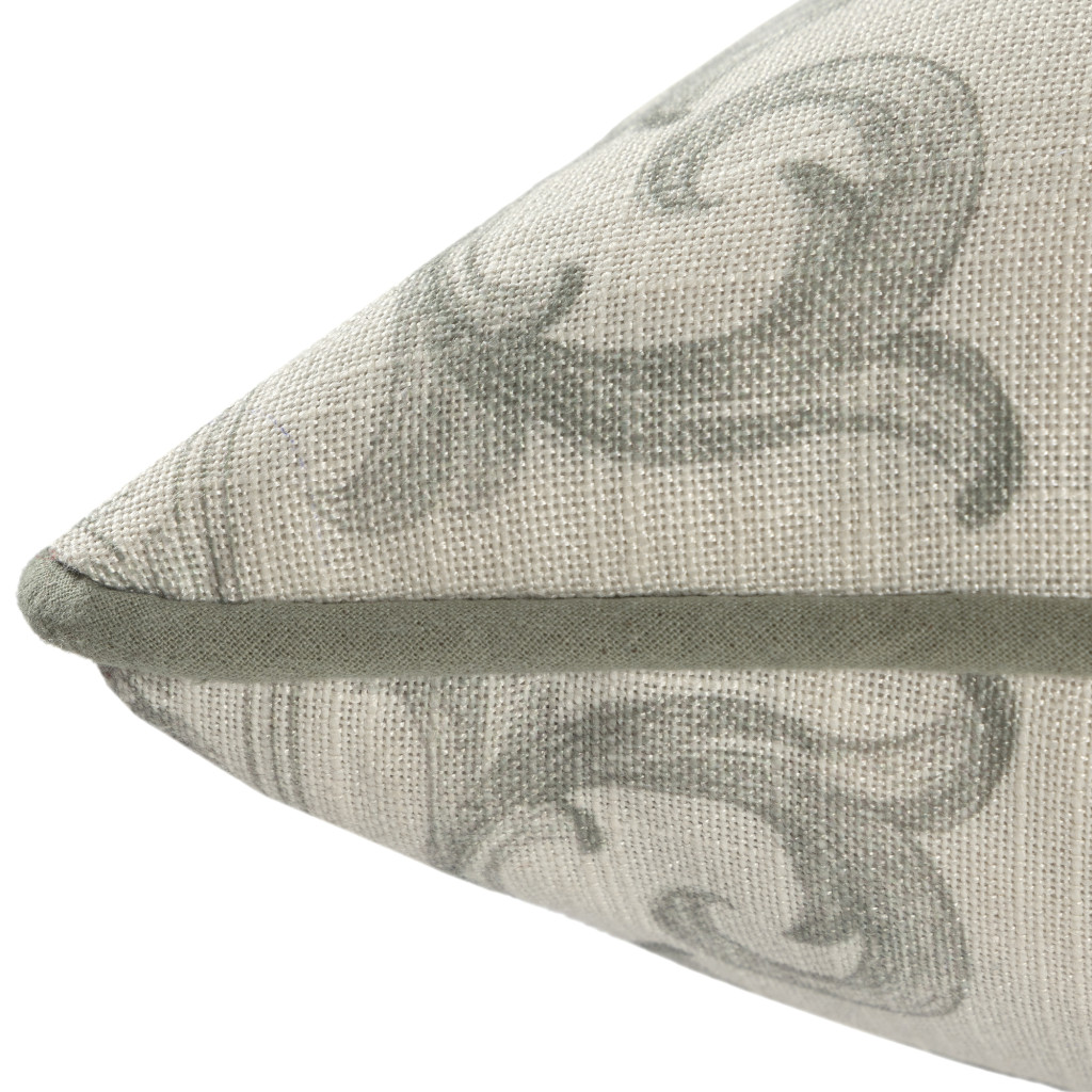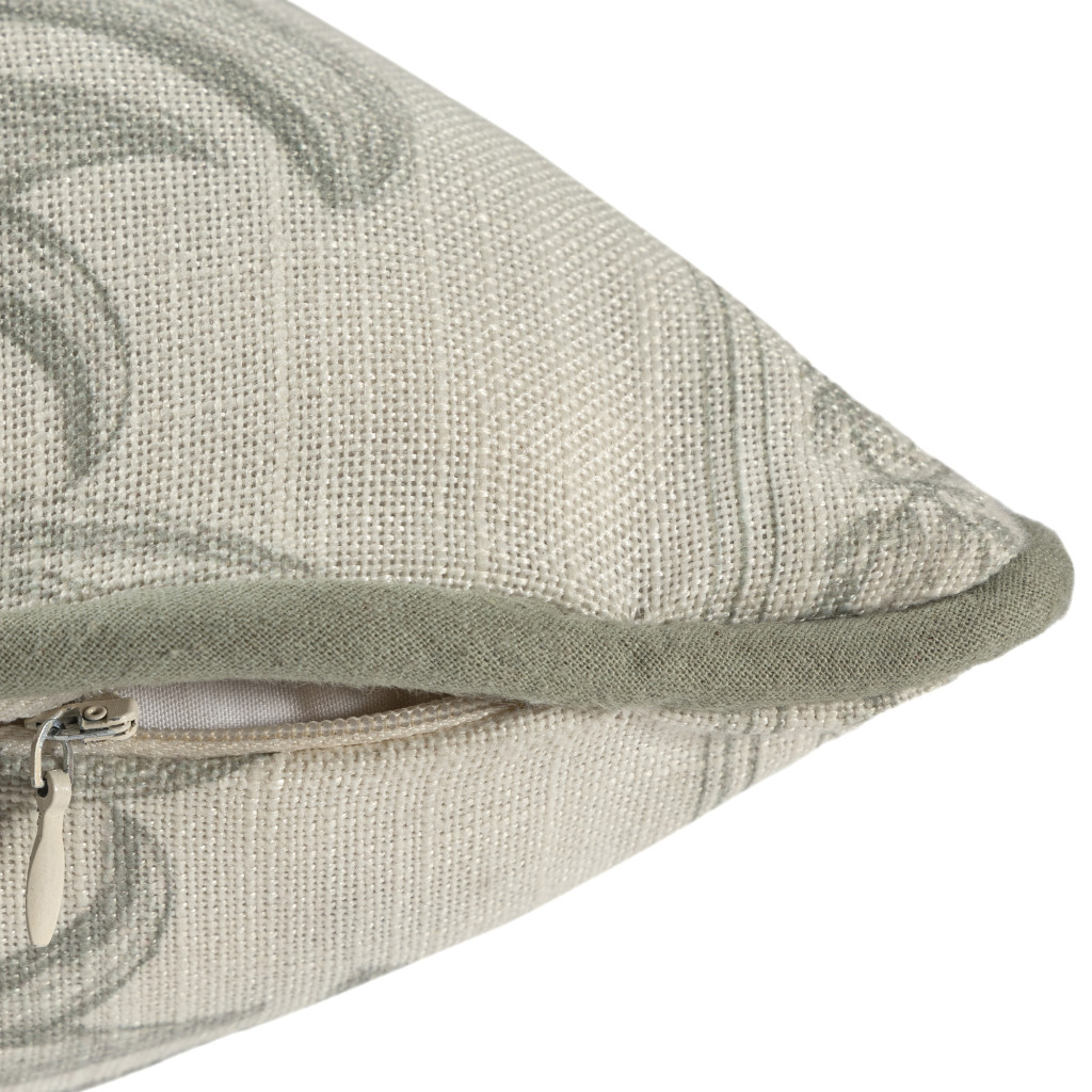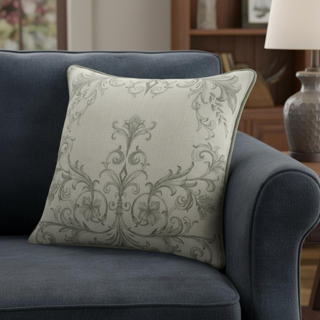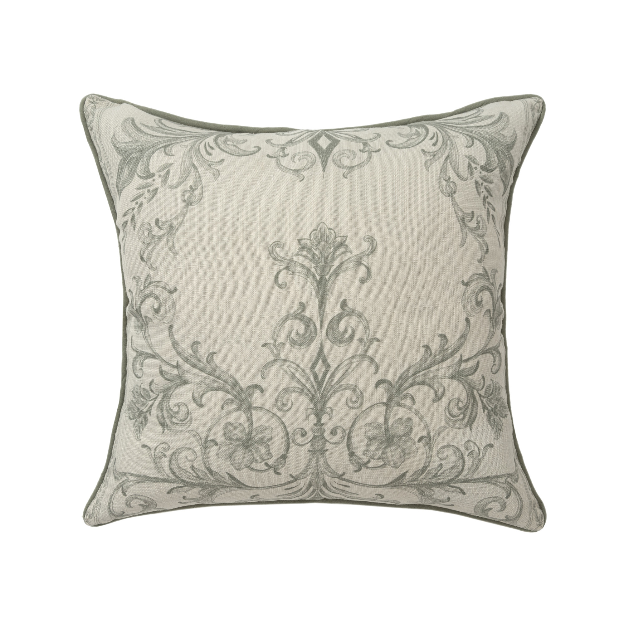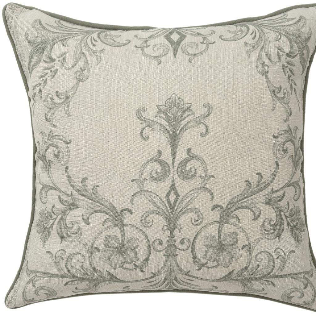 poly linen throw pillow cover, linen throw pillow cover, recycled poly linen throw pillow, poly linen throw pillow, 24" ivory green damask recycled |