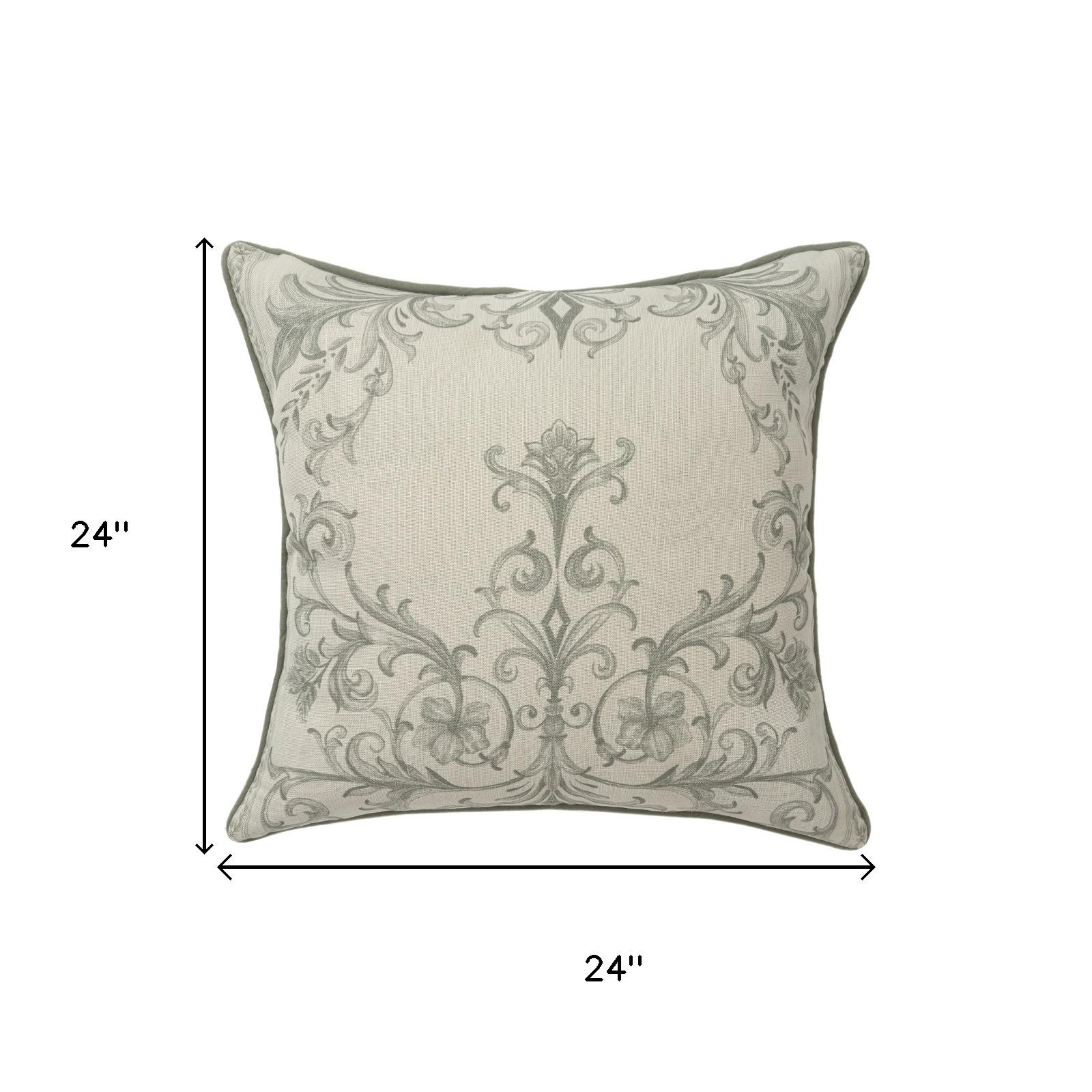 The 24-inch ivory and green damask recycled poly linen throw pillow cover is the perfect decorative accessory for your home. This soft and durable decorative pillow cover is expertly made of high grade, long lasting recycled poly linen in a ivory and green coloration. Pillow covers are a good idea for anyone that loves to decorate or accent their space with color and texture. Combine with your own fill or insert to add decoration and dimension to your favorite chair, accent your sofa, or to use as part of your bed ensemble. 24.00-inch h x 24.00-inch w x 0.25-inch d.