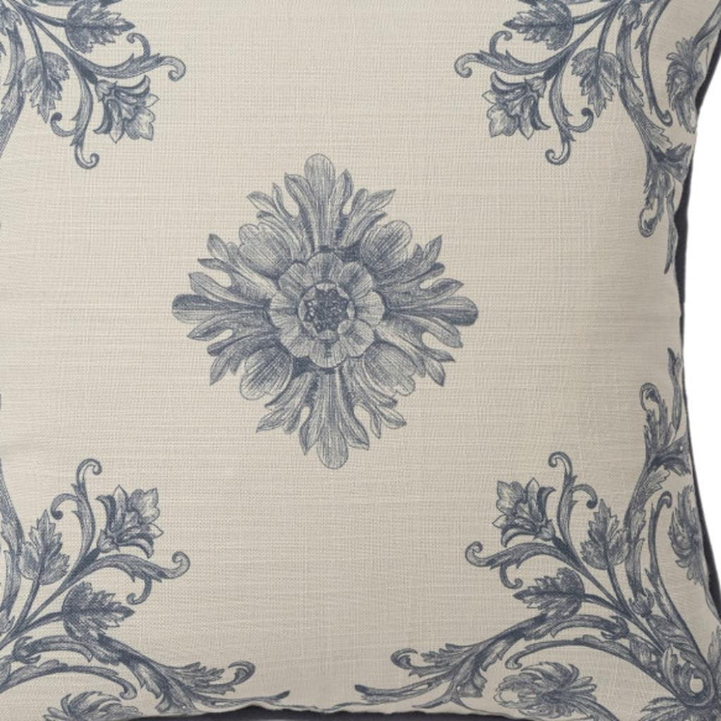 poly linen throw pillow cover, linen throw pillow cover, recycled poly linen throw pillow, poly linen throw pillow, 20" blue ivory floral recycled |