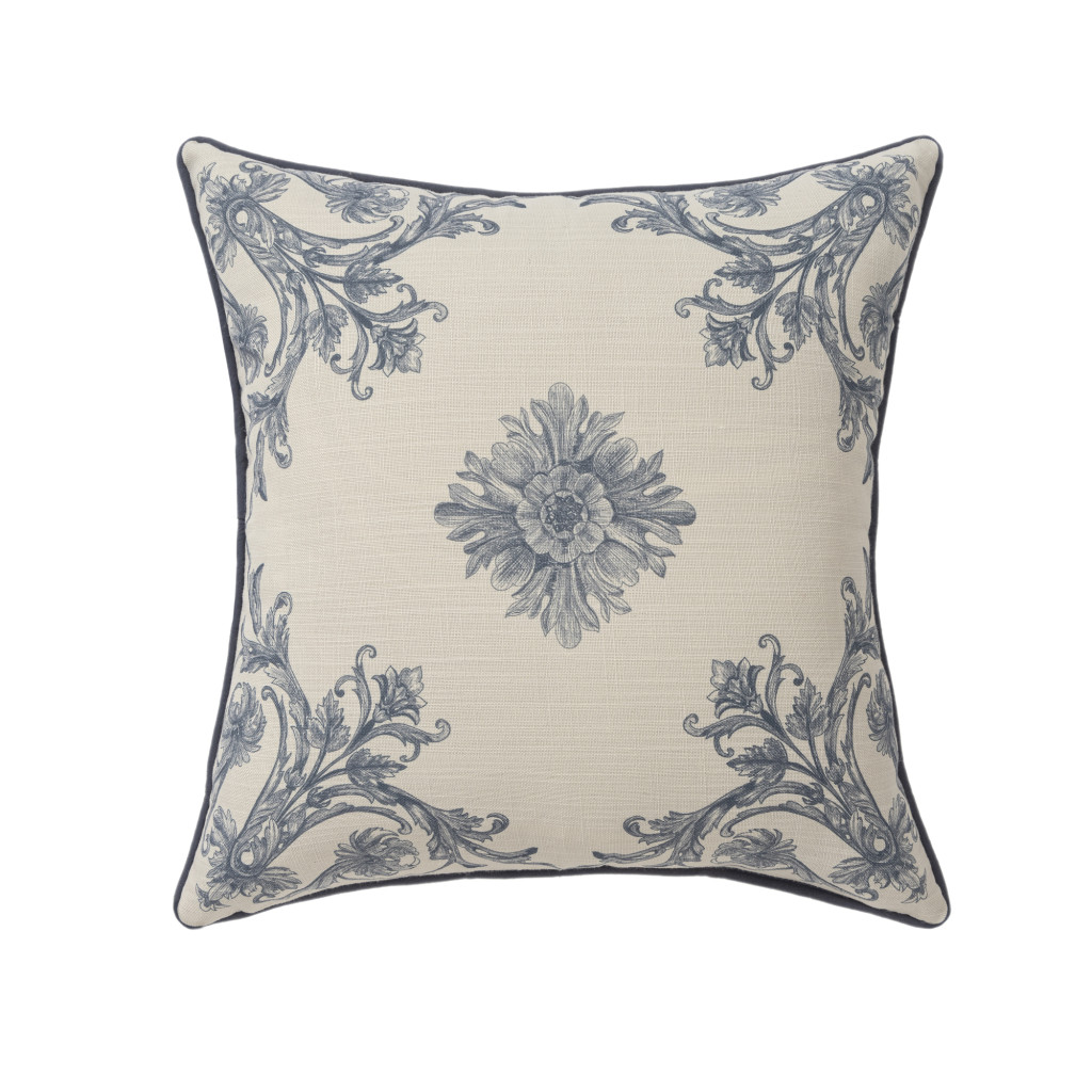Add an air of fashion to your room and rejuvenate the space with this cute and fashionable 20-inch blue and ivory floral recycled poly linen throw pillow cover. This soft and durable decorative pillow cover is expertly made of high grade, long lasting recycled poly linen in a blue and ivory coloration. Pillow covers are a good idea for anyone that loves to decorate or accent their space with color and texture. Combine with your own fill or insert to add decoration and dimension to your favorite chair, accent your sofa, or to use as part of your bed ensemble. 20.00-inch h x 20.00-inch w x 0.25-inch d.
