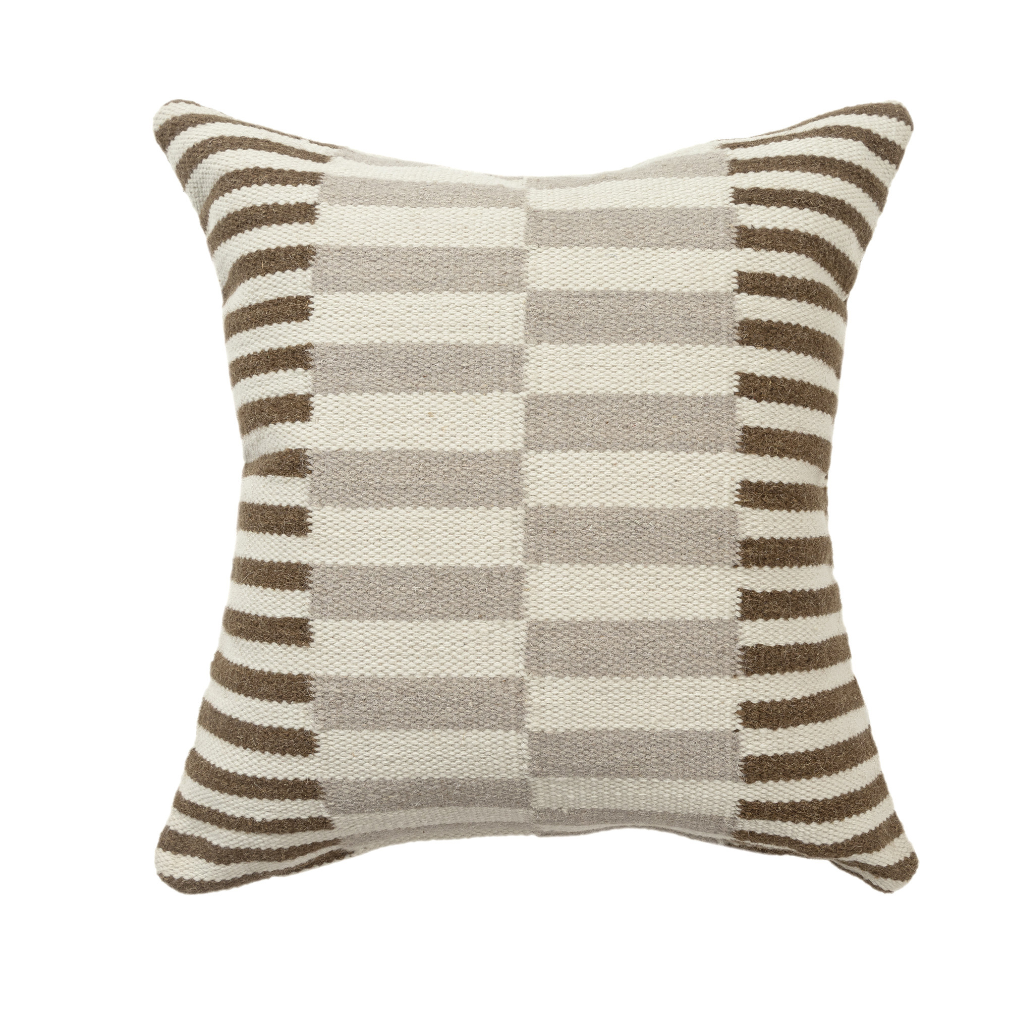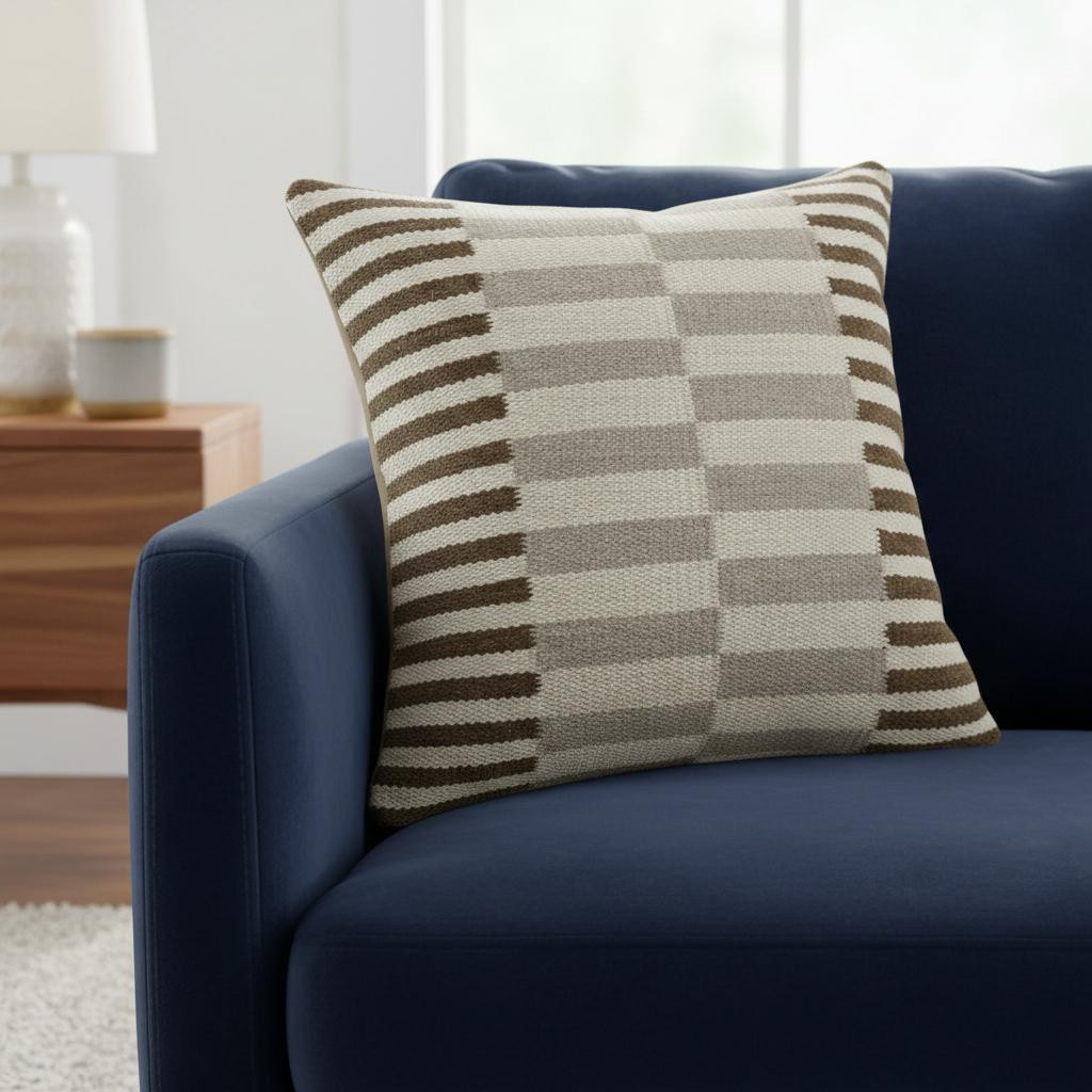 This 24-inch brown gray and off white striped wool blend throw pillow cover will add a beautiful decorative accent to your decor. This brown, gray, and off white hued, accent pillow cover, represents quality construction, expertly made from durable wool blend that is not only long lasting but soft to the touch as well. Pillow covers are a good idea for anyone that loves to decorate or accent their space with color and texture. Combine with your own fill or insert to add decoration and dimension to your favorite chair, accent your sofa, or to use as part of your bed ensemble. 24.00-inch h x 24.00-inch w x 0.25-inch d.