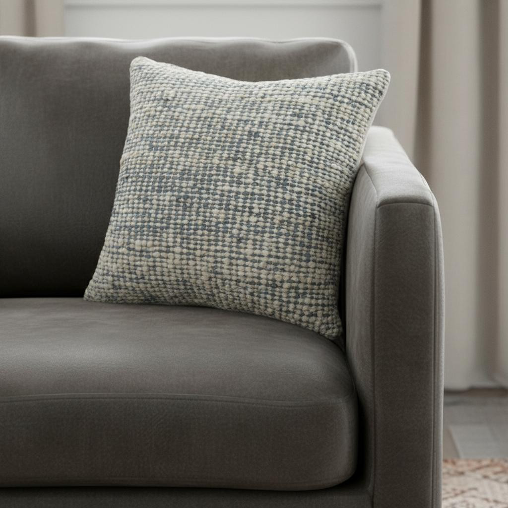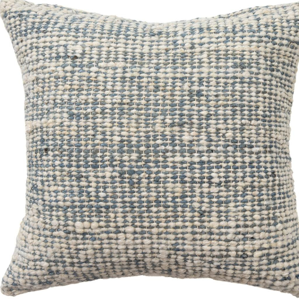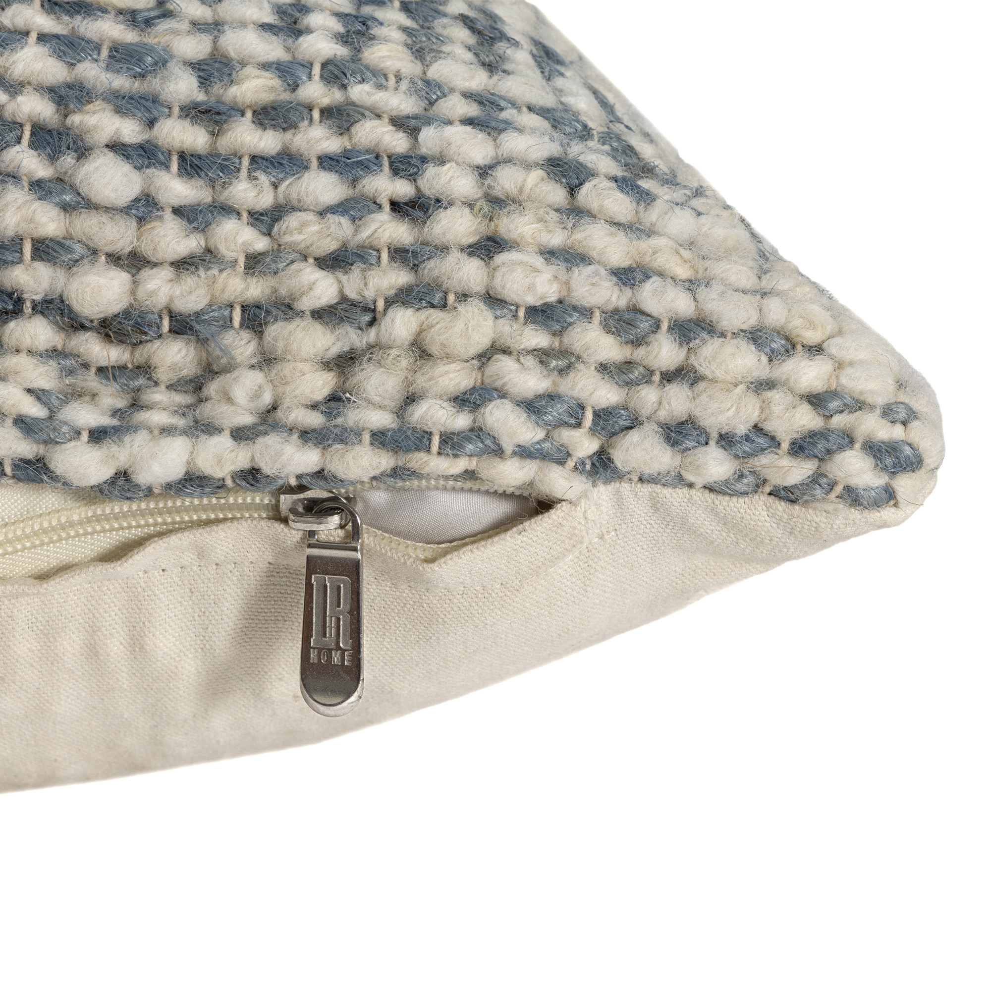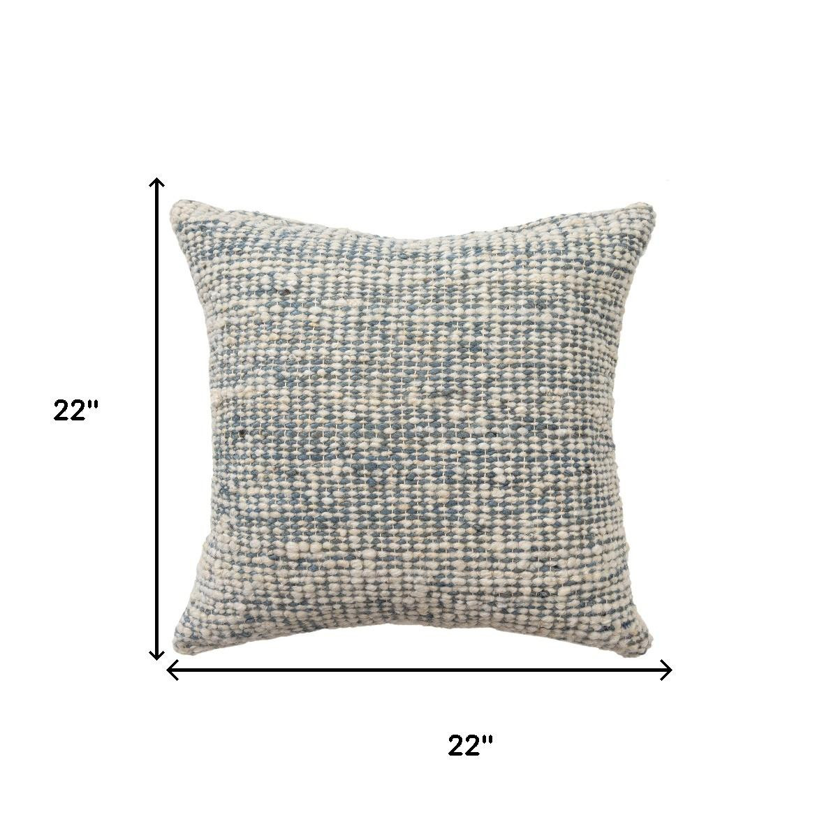 Add an air of fashion to your room and rejuvenate the space with this cute and fashionable 22-inch ivory and blue striped wool blend throw pillow cover. This soft and durable decorative pillow cover is expertly made of high grade, long lasting wool blend in a ivory and blue coloration. Pillow covers are a good idea for anyone that loves to decorate or accent their space with color and texture. Combine with your own fill or insert to add decoration and dimension to your favorite chair, accent your sofa, or to use as part of your bed ensemble. 22.00-inch h x 22.00-inch w x 0.25-inch d.