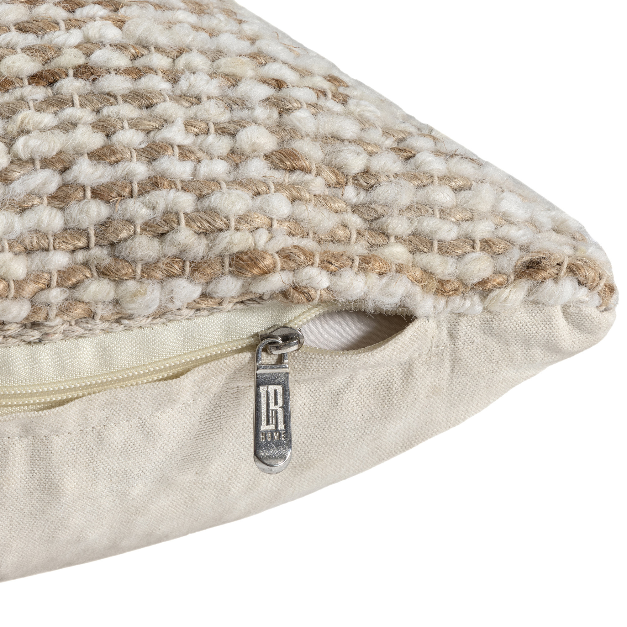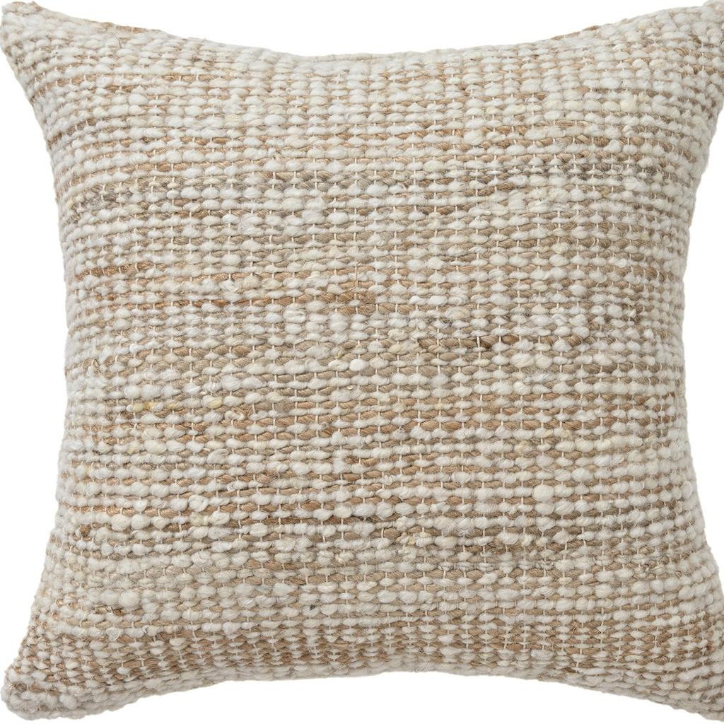 Bring a bit of fashion and zip to your space with this eye-catching and comfy 22-inch ivory and natural striped wool blend throw pillow cover. Durable ivory and beige wool blend has been used to give this pillow cover a beautiful look that will stand the test of time. Pillow covers are a good idea for anyone that loves to decorate or accent their space with color and texture. Combine with your own fill or insert to add decoration and dimension to your favorite chair, accent your sofa, or to use as part of your bed ensemble. 22.00-inch h x 22.00-inch w x 0.25-inch d.