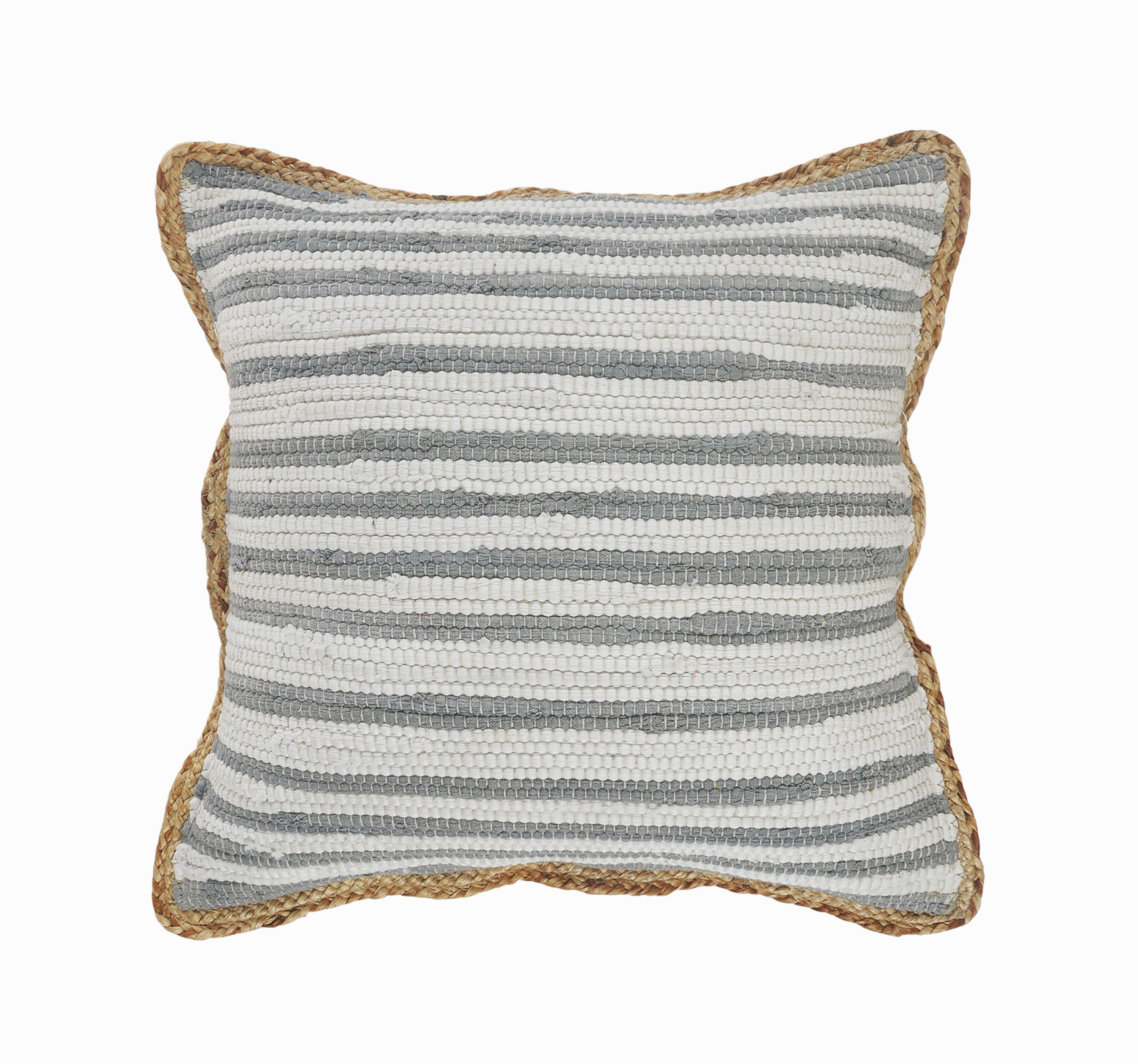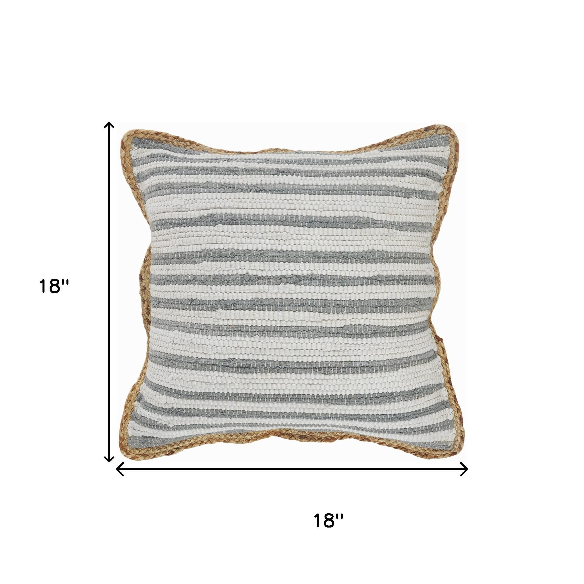 The 18-inch gray and off white striped cotton blend throw pillow cover is the perfect decorative accessory for your home. This soft and durable decorative pillow cover is expertly made of high grade, long lasting cotton blend in a gray and off white coloration. Pillow covers are a good idea for anyone that loves to decorate or accent their space with color and texture. Combine with your own fill or insert to add decoration and dimension to your favorite chair, accent your sofa, or to use as part of your bed ensemble. 18.00-inch h x 18.00-inch w x 0.50-inch d.