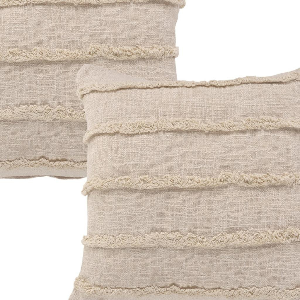 The perfect complement to your sofa, favorite chair, or bed, this set of two 20-inch beige and brown striped cotton throw pillow covers is a great decorative accent. These beige and brown hued pillow covers represent quality construction, expertly made from durable cotton that is not only long lasting but super soft to the touch as well. Pillow covers are a good idea for anyone that loves to decorate or accent their space with color and texture. Combine with your own fill or insert to add decoration and dimension to your favorite chair, accent your sofa, or to use as part of your bed ensemble. 20.00-inch h x 20.00-inch w x 0.25-inch d.