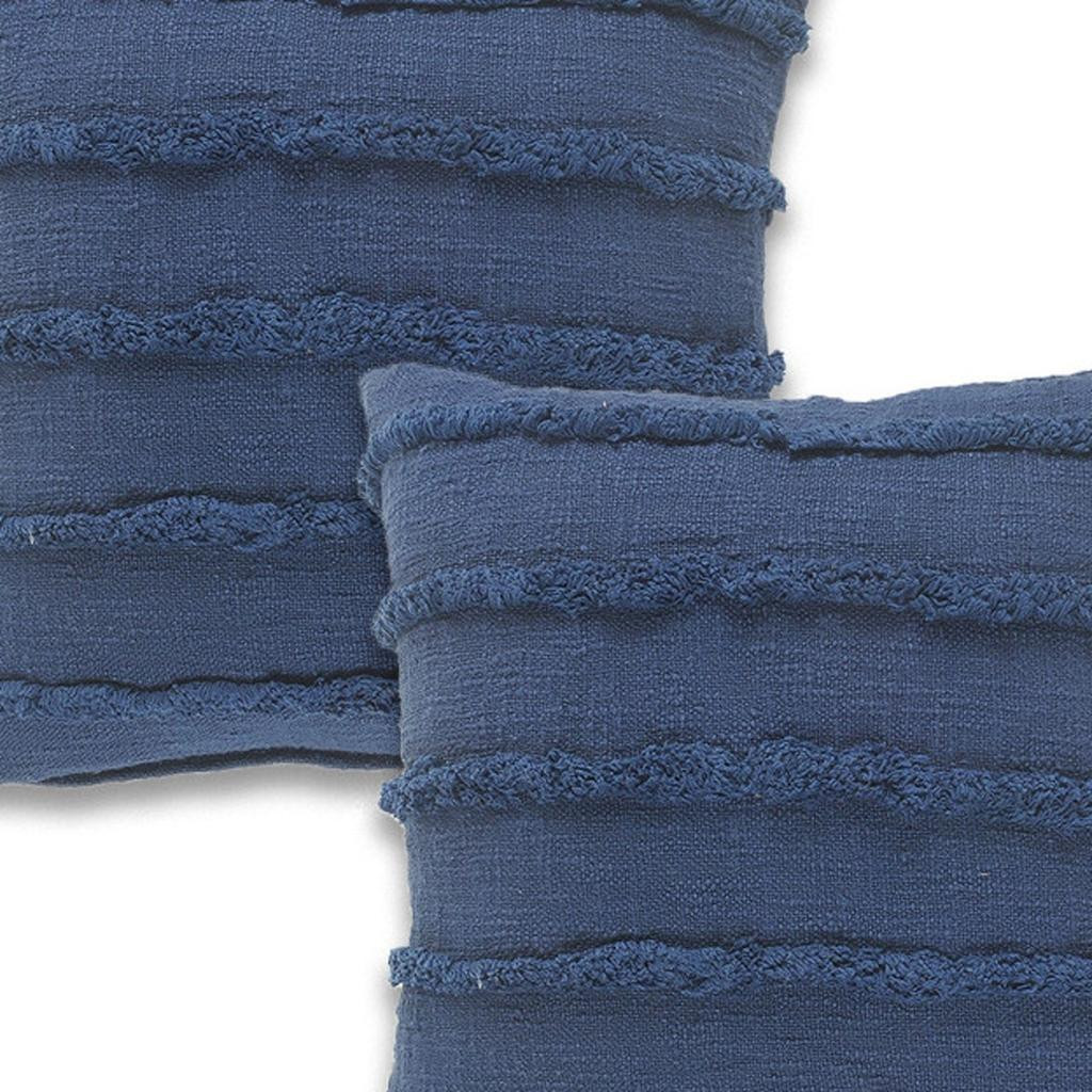 Bring a bit of fashion and zip to your space with this eye-catching and comfy set of two 20-inch blue and dark blue striped cotton throw pillow covers. These blue and dark blue hued pillow covers represent quality construction, expertly made from durable cotton that is not only long lasting but super soft to the touch as well. Pillow covers are a good idea for anyone that loves to decorate or accent their space with color and texture. Combine with your own fill or insert to add decoration and dimension to your favorite chair, accent your sofa, or to use as part of your bed ensemble. 20.00-inch h x 20.00-inch w x 0.25-inch d.