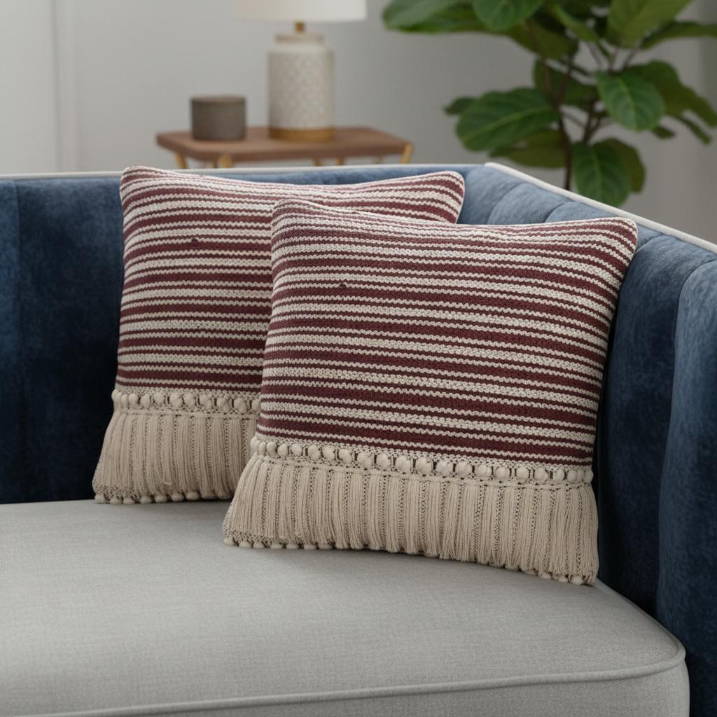 cotton throw pillow covers tassels, pillow covers tassels, throw pillow covers tassels, striped cotton throw pillow covers, 20" X 20" maroon ivory lumbar striped |
