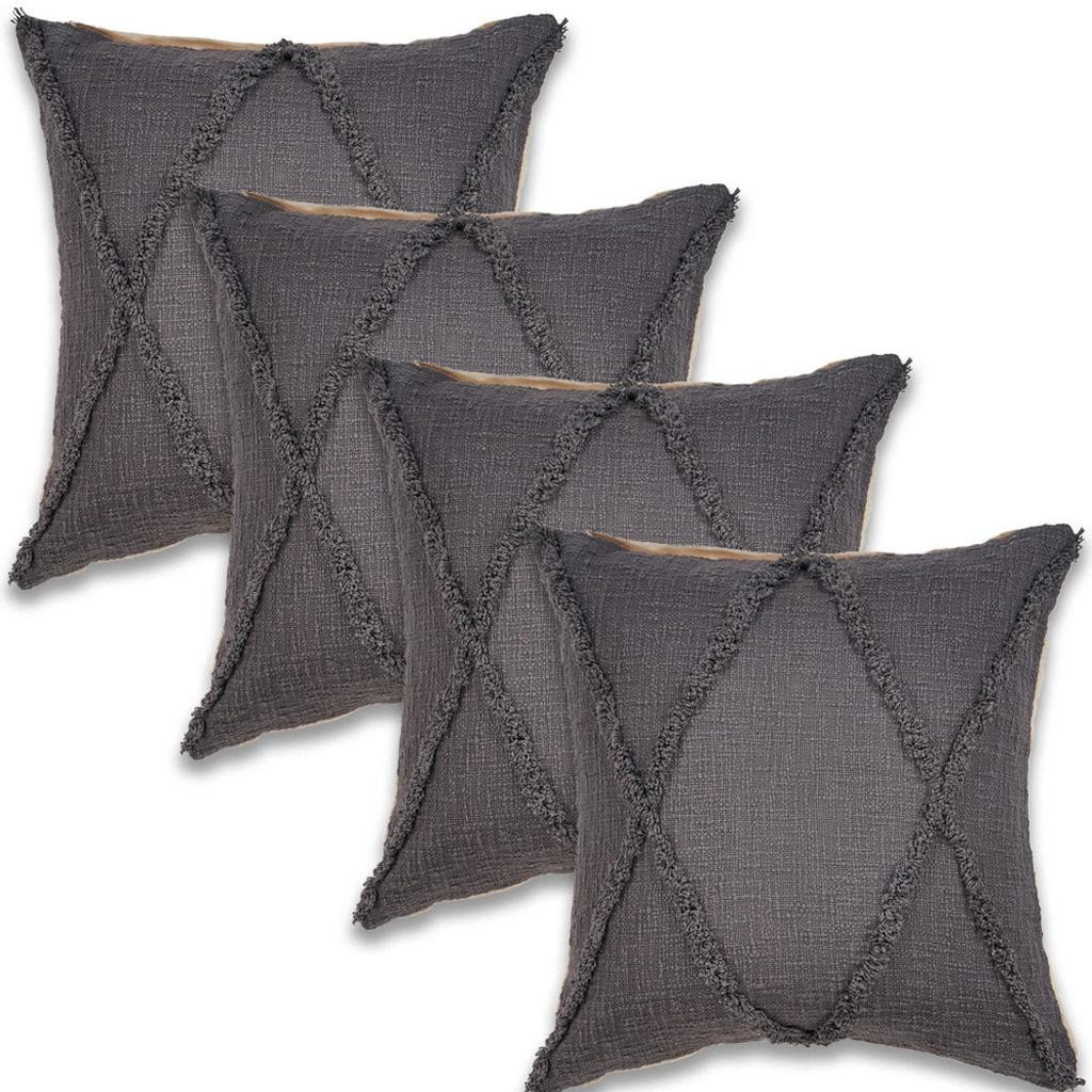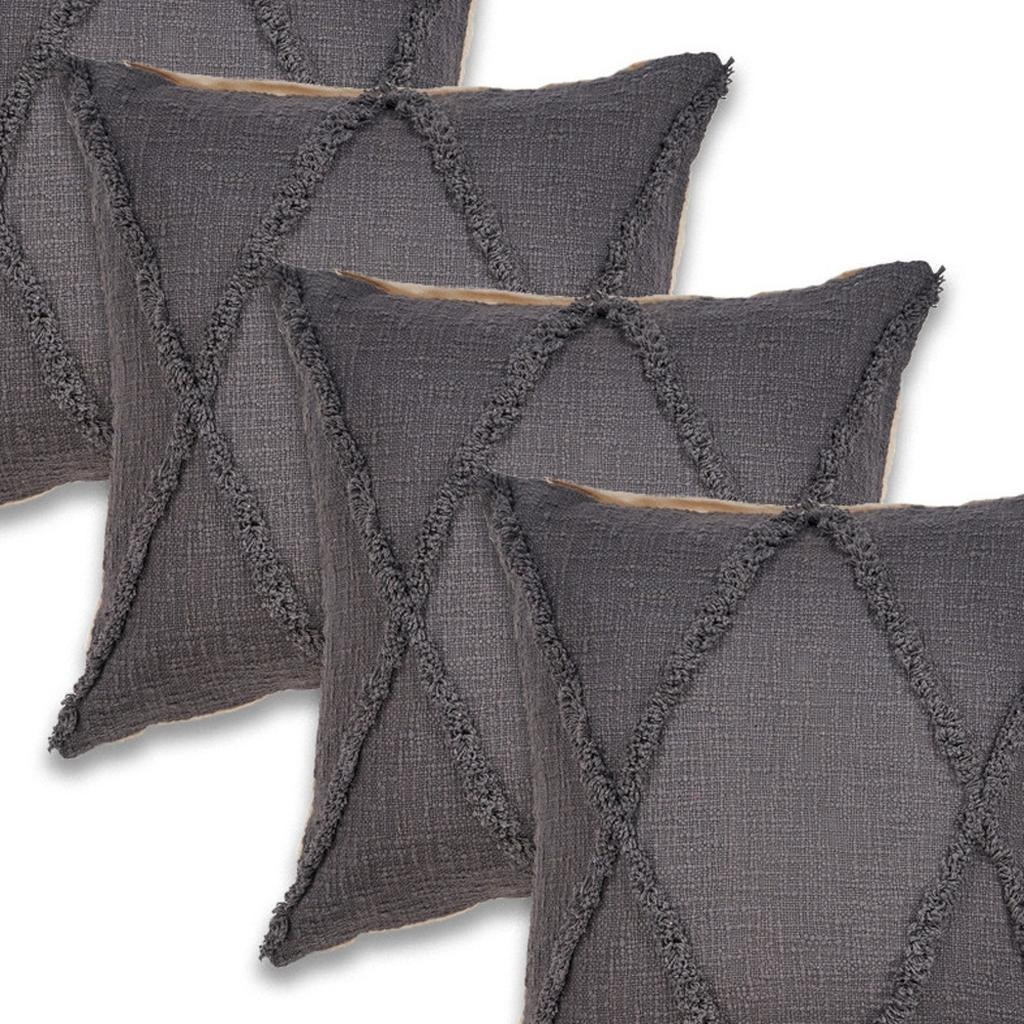 The perfect complement to your sofa, favorite chair, or bed, this set of four 20-inch gray and ash gray diamond cotton throw pillow covers is a great decorative accent. These great looking soft decorative pillow covers are expertly made of durable and long lasting cotton in a gray and ash gray coloration. Pillow covers are a good idea for anyone that loves to decorate or accent their space with color and texture. Combine with your own fill or insert to add decoration and dimension to your favorite chair, accent your sofa, or to use as part of your bed ensemble. 20.00-inch h x 20.00-inch w x 0.25-inch d.
