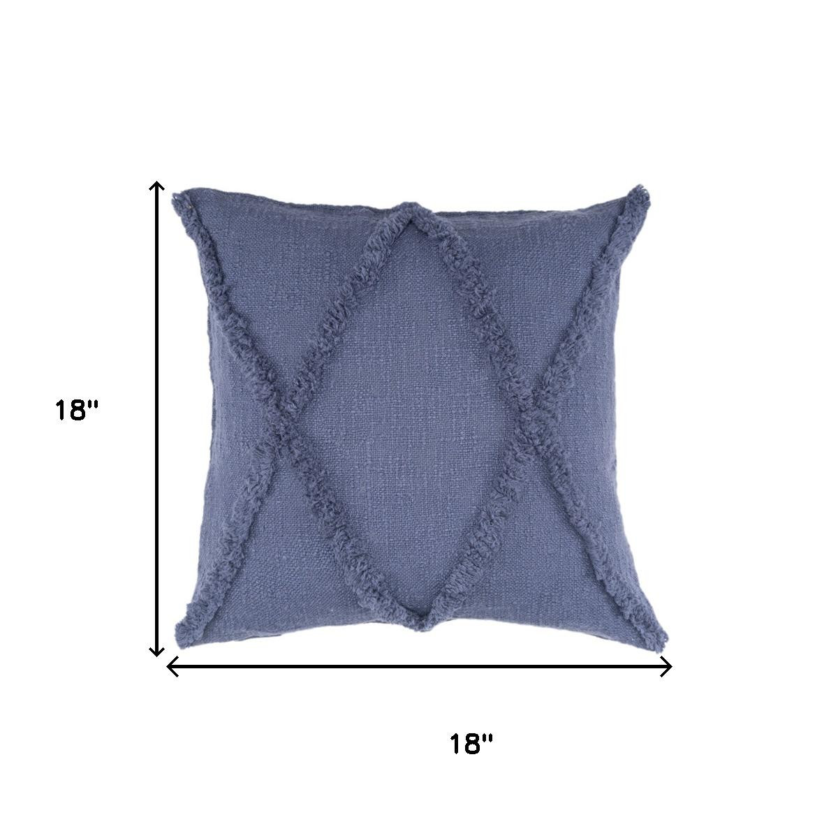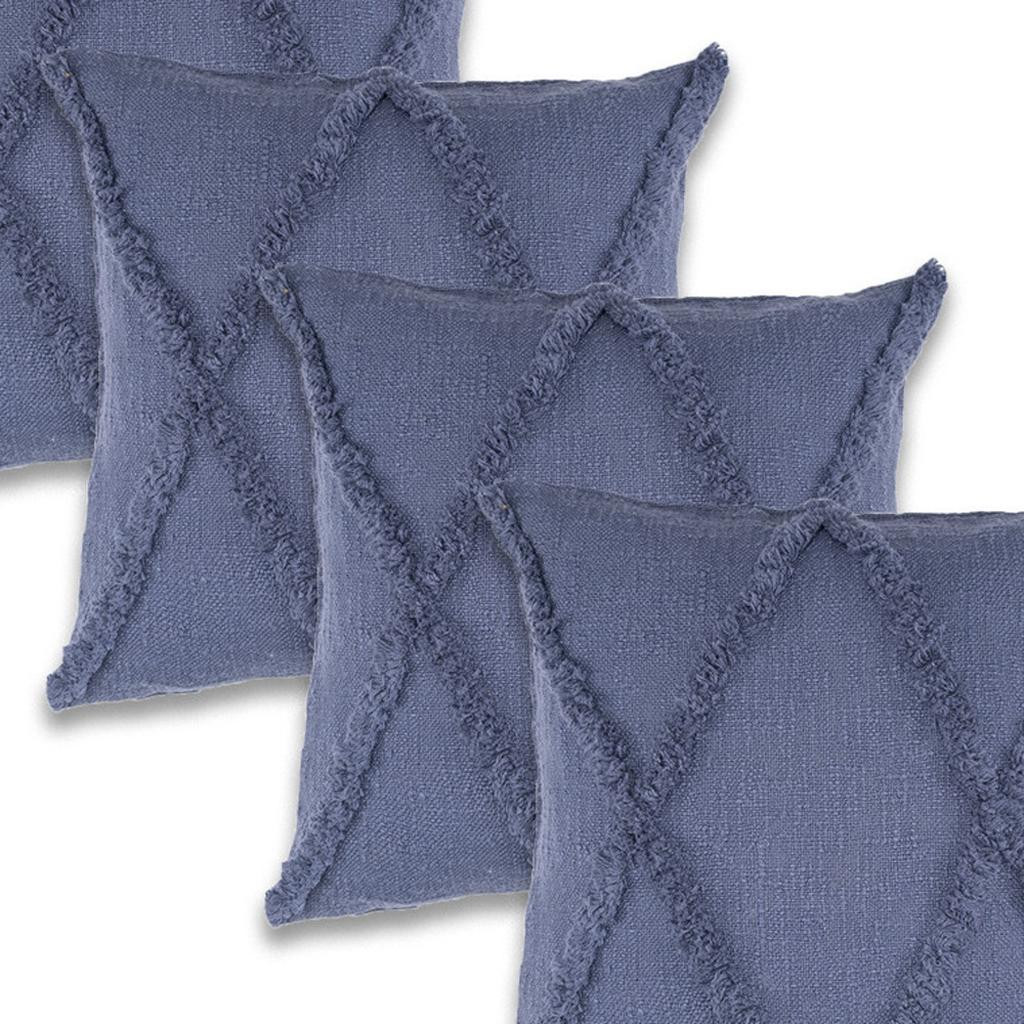 This set of four 18-inch denim blue and blue diamond cotton throw pillow covers will add a beautiful decorative accent to your decor. This denim blue and blue colored decorative pillow cover set is made from high grade cotton that is durable and soft to the touch. Decorative pillow covers are a great way to change up the look and feel of your space easily and quickly. Combine with your own fill or insert to add decoration and dimension to your favorite chair, accent your sofa, or to use as part of your bed ensemble. 18.00-inch h x 18.00-inch w x 0.25-inch d.