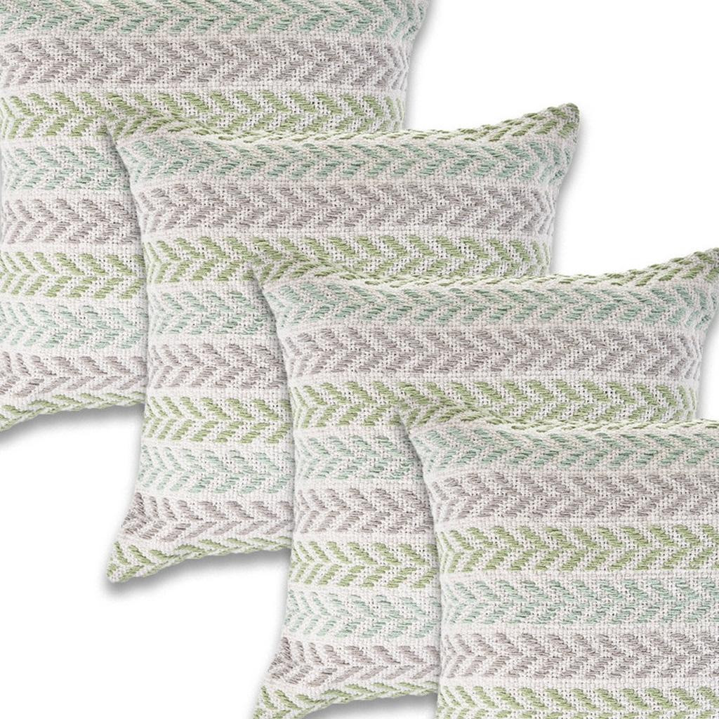 Unique and decorative, this comfortable set of four 18-inch green and blue chevron cotton throw pillow covers will leave a lasting impression. Ultra durable green and blue cotton has been used to make this decorative pillow cover set a beautiful look that will stand the test of time. Pillow covers are a good idea for anyone that loves to decorate or accent their space with color and texture. Combine with your own fill or insert to add decoration and dimension to your favorite chair, accent your sofa, or to use as part of your bed ensemble. 18.00-inch h x 18.00-inch w x 1.00-inch d.