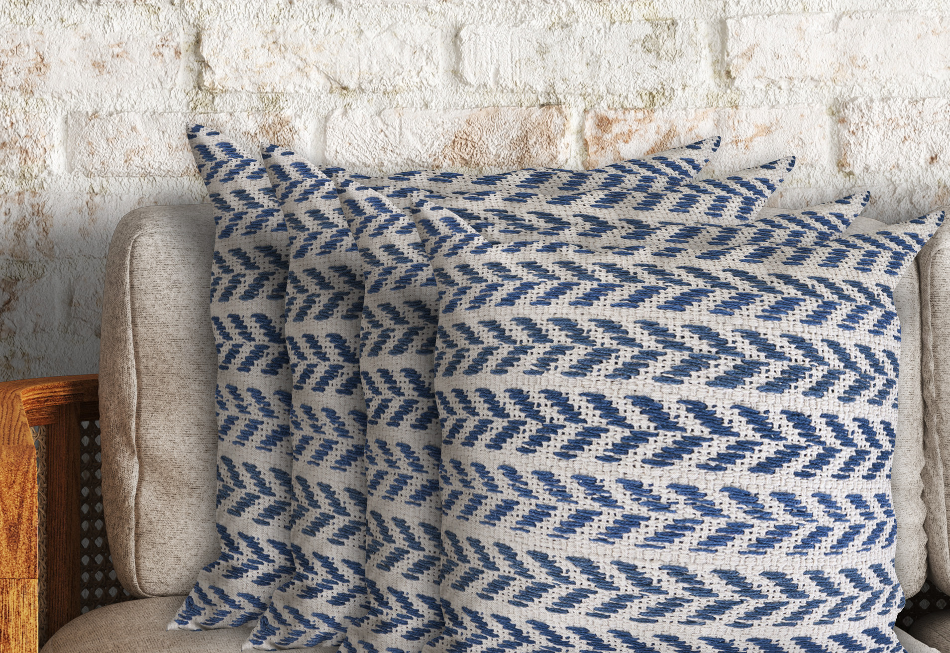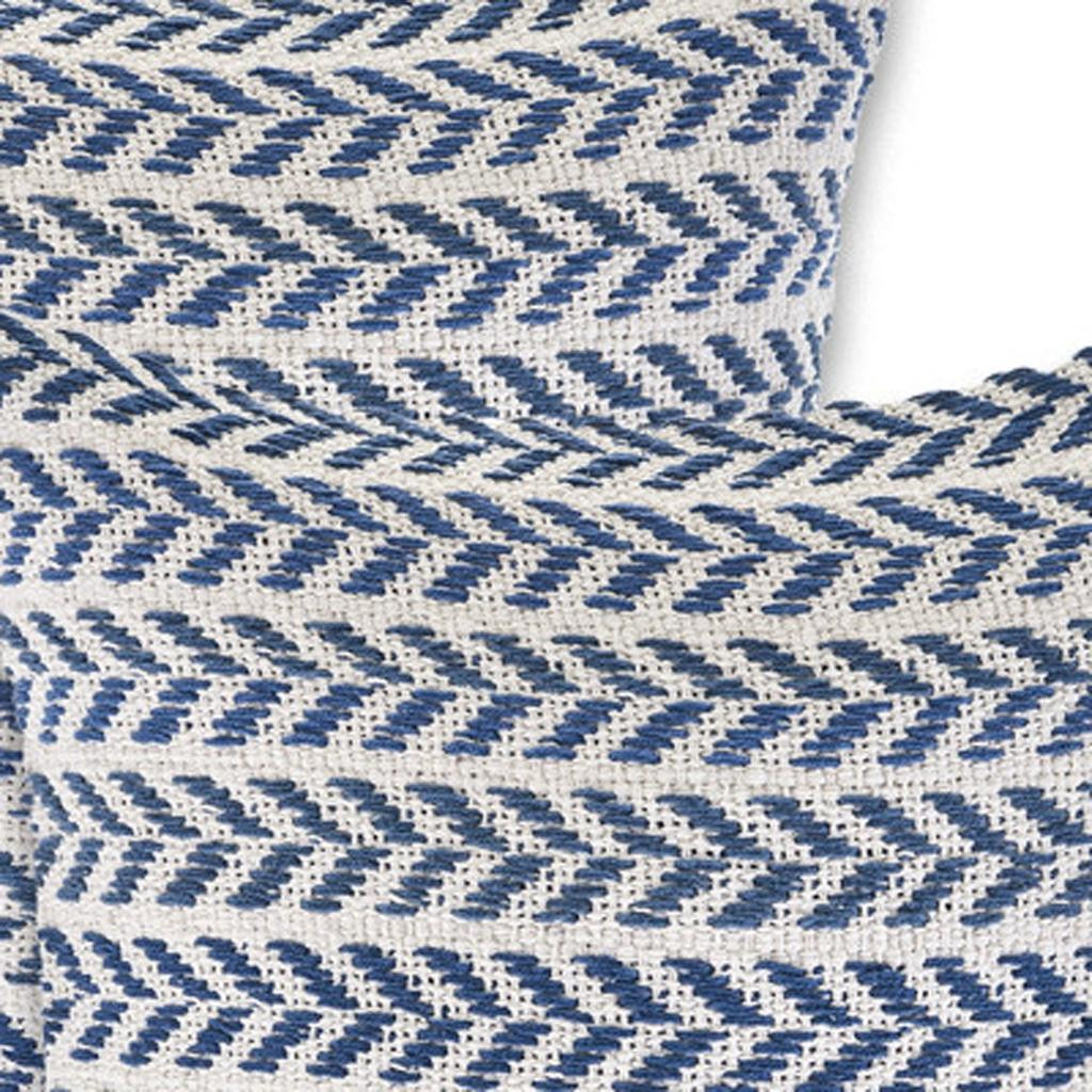 Bring a bit of fashion and zip to your space with this eye-catching and comfy set of four 18-inch indigo and white chevron cotton throw pillow covers. Ultra durable indigo and white cotton has been used to make this decorative pillow cover set a beautiful look that will stand the test of time. Decorative pillow covers are a great way to change up the look and feel of your space easily and quickly. Combine with your own fill or insert to add decoration and dimension to your favorite chair, accent your sofa, or to use as part of your bed ensemble. 18.00-inch h x 18.00-inch w x 1.00-inch d.