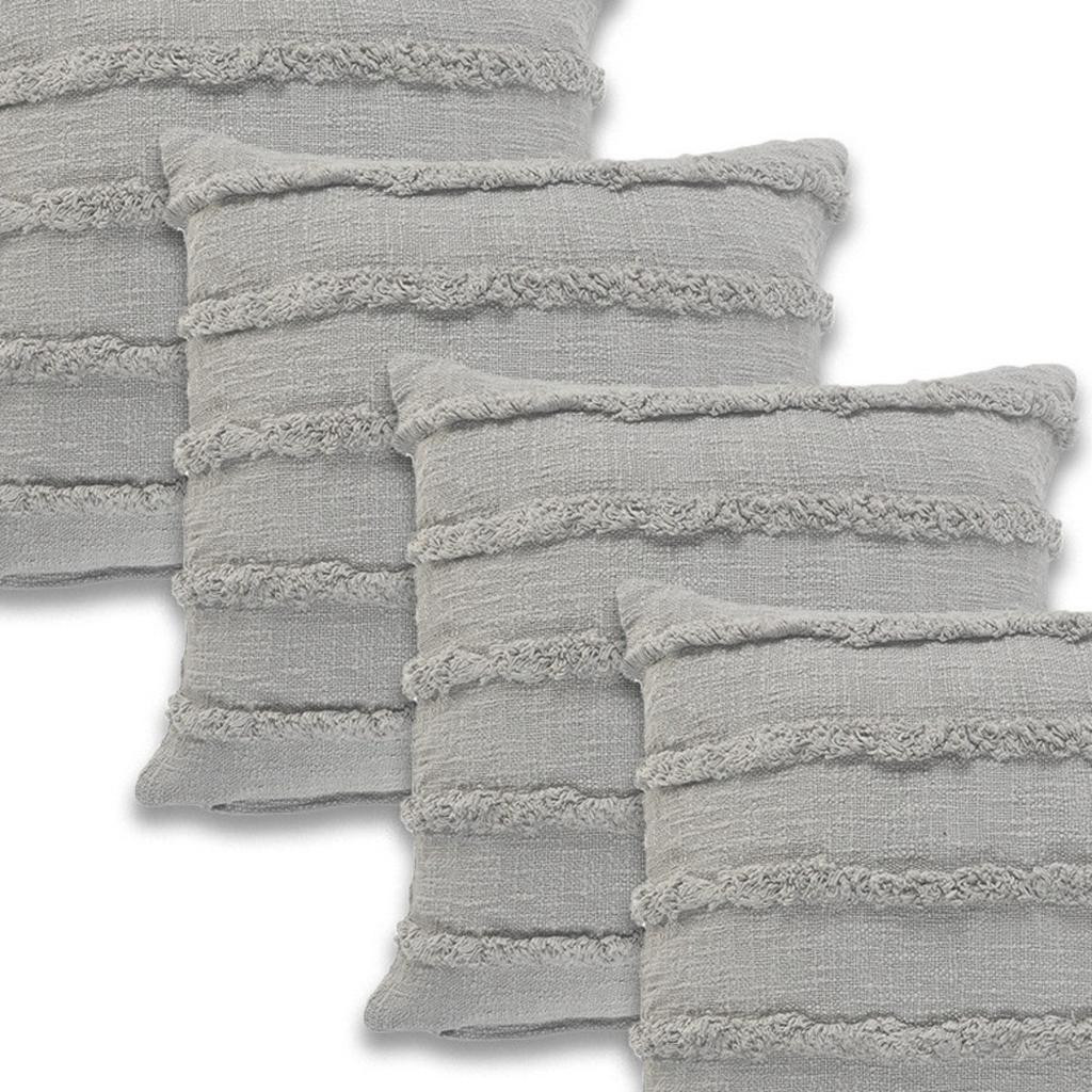 Add an air of fashion to your room and rejuvenate the space with this cute and fashionable set of four 20-inch gray and light gray striped cotton throw pillow covers. This gray and light gray colored decorative pillow cover set is made from high grade cotton that is durable and soft to the touch. Decorative pillow covers are a great way to change up the look and feel of your space easily and quickly. Combine with your own fill or insert to add decoration and dimension to your favorite chair, accent your sofa, or to use as part of your bed ensemble. 20.00-inch h x 20.00-inch w x 0.25-inch d.