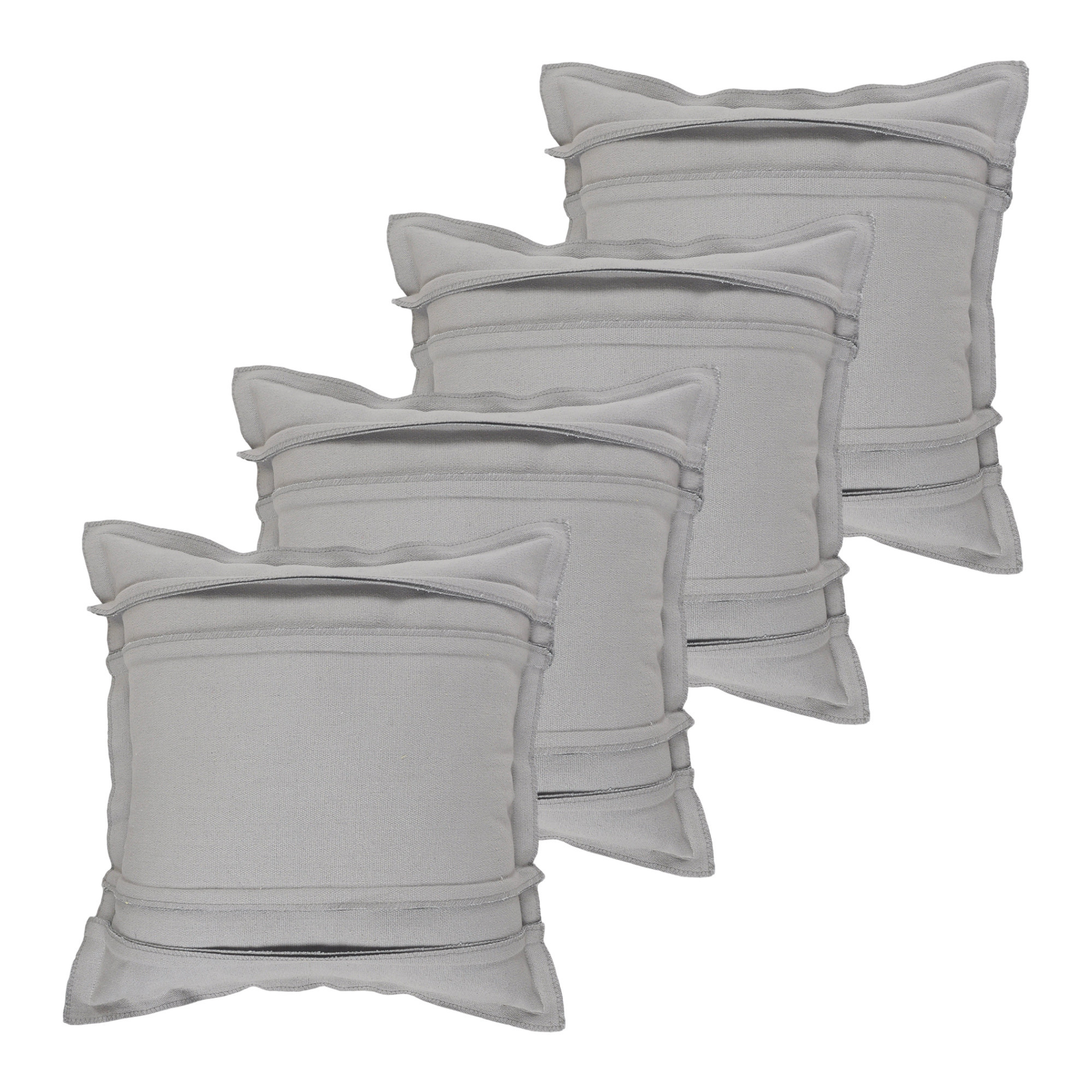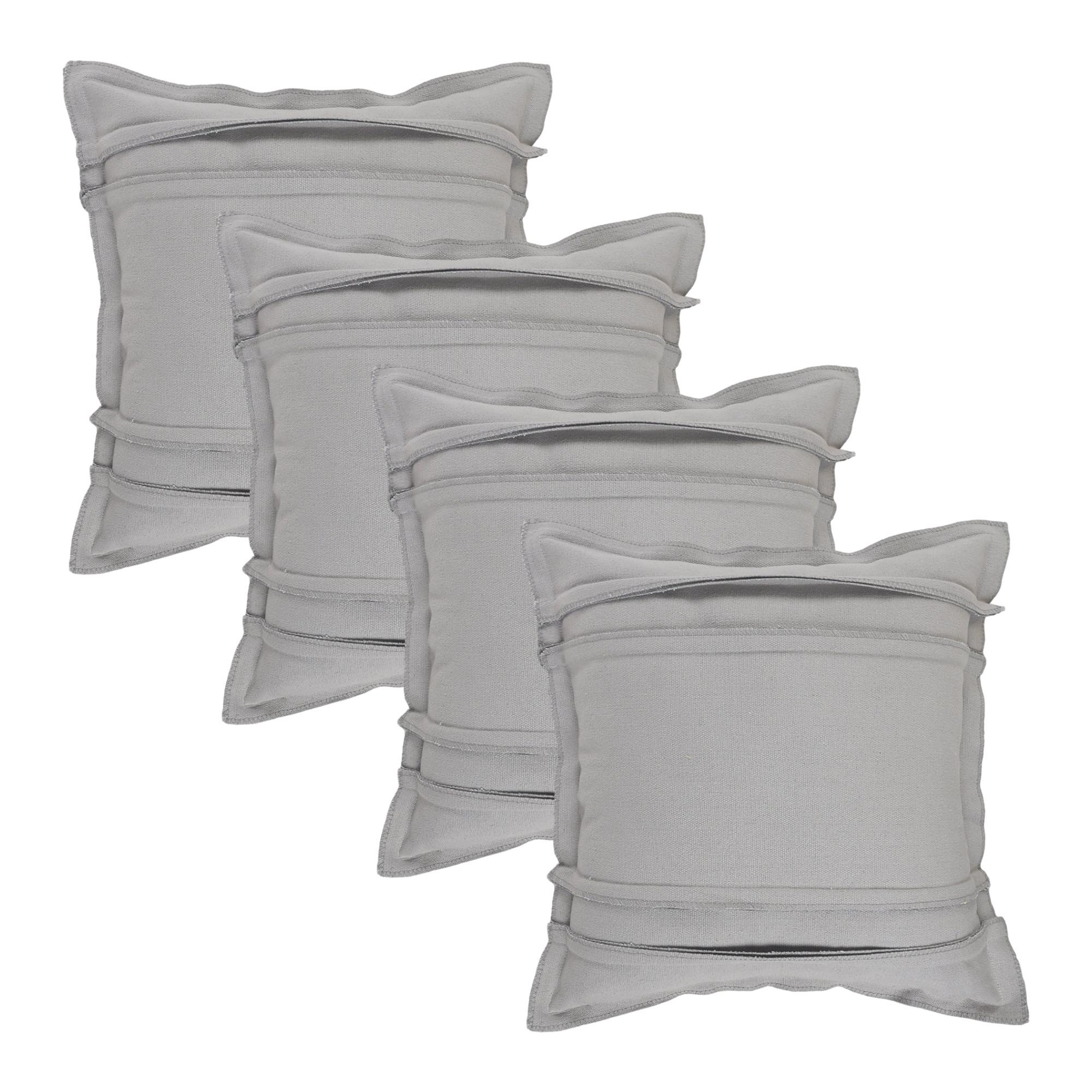 The set of four 20-inch gray cotton throw pillow covers is the perfect decorative accessory for your home. Ultra durable gray cotton has been used to make this decorative pillow cover set a beautiful look that will stand the test of time. Pillow covers are a good idea for anyone that loves to decorate or accent their space with color and texture. Combine with your own fill or insert to add decoration and dimension to your favorite chair, accent your sofa, or to use as part of your bed ensemble. 20.00-inch h x 20.00-inch w x 0.25-inch d.