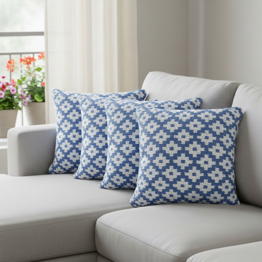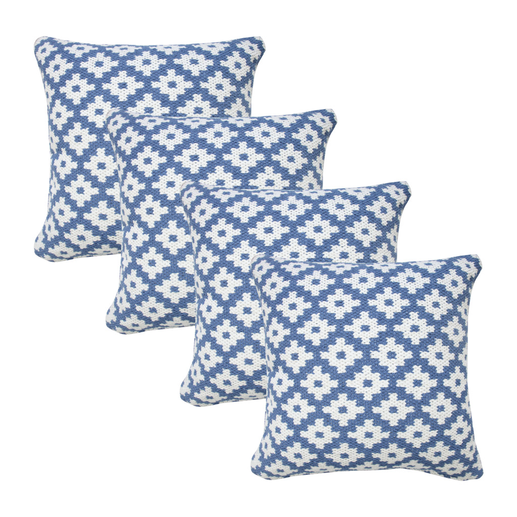 This set of four 20-inch blue and white geometric cotton blend throw pillow covers will add a beautiful decorative accent to your decor. This blue and white colored decorative pillow cover set is made from high grade cotton blend that is durable and soft to the touch. Pillow covers are a good idea for anyone that loves to decorate or accent their space with color and texture. Combine with your own fill or insert to add decoration and dimension to your favorite chair, accent your sofa, or to use as part of your bed ensemble. 20.00-inch h x 20.00-inch w x 0.25-inch d.