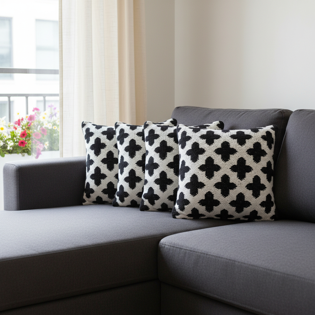 The set of four 20-inch white and black geometric cotton blend throw pillow covers is the perfect decorative accessory for your home. These great looking soft decorative pillow covers are expertly made of durable and long lasting cotton blend in a white and black coloration. Pillow covers are a good idea for anyone that loves to decorate or accent their space with color and texture. Combine with your own fill or insert to add decoration and dimension to your favorite chair, accent your sofa, or to use as part of your bed ensemble. 20.00-inch h x 20.00-inch w x 0.25-inch d.
