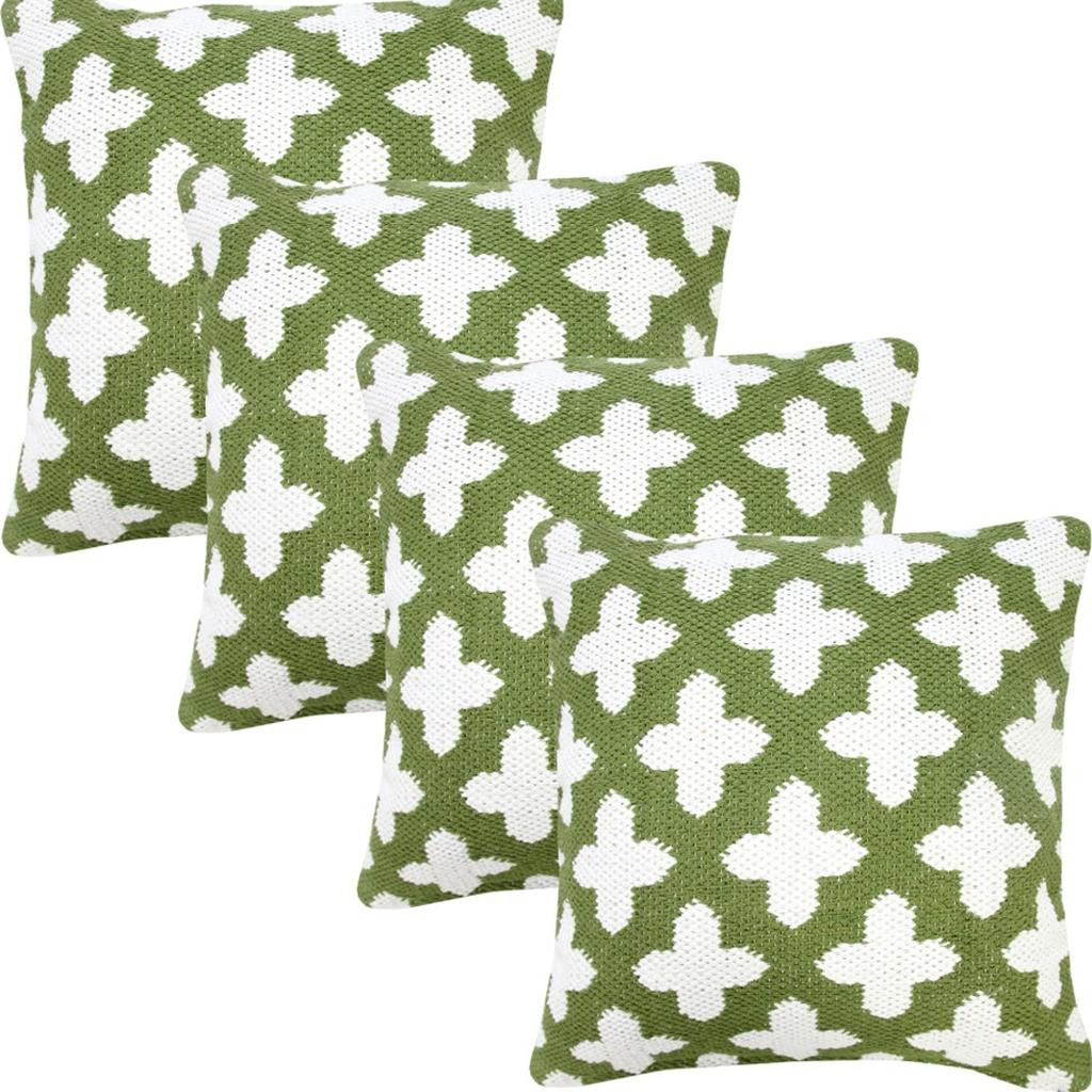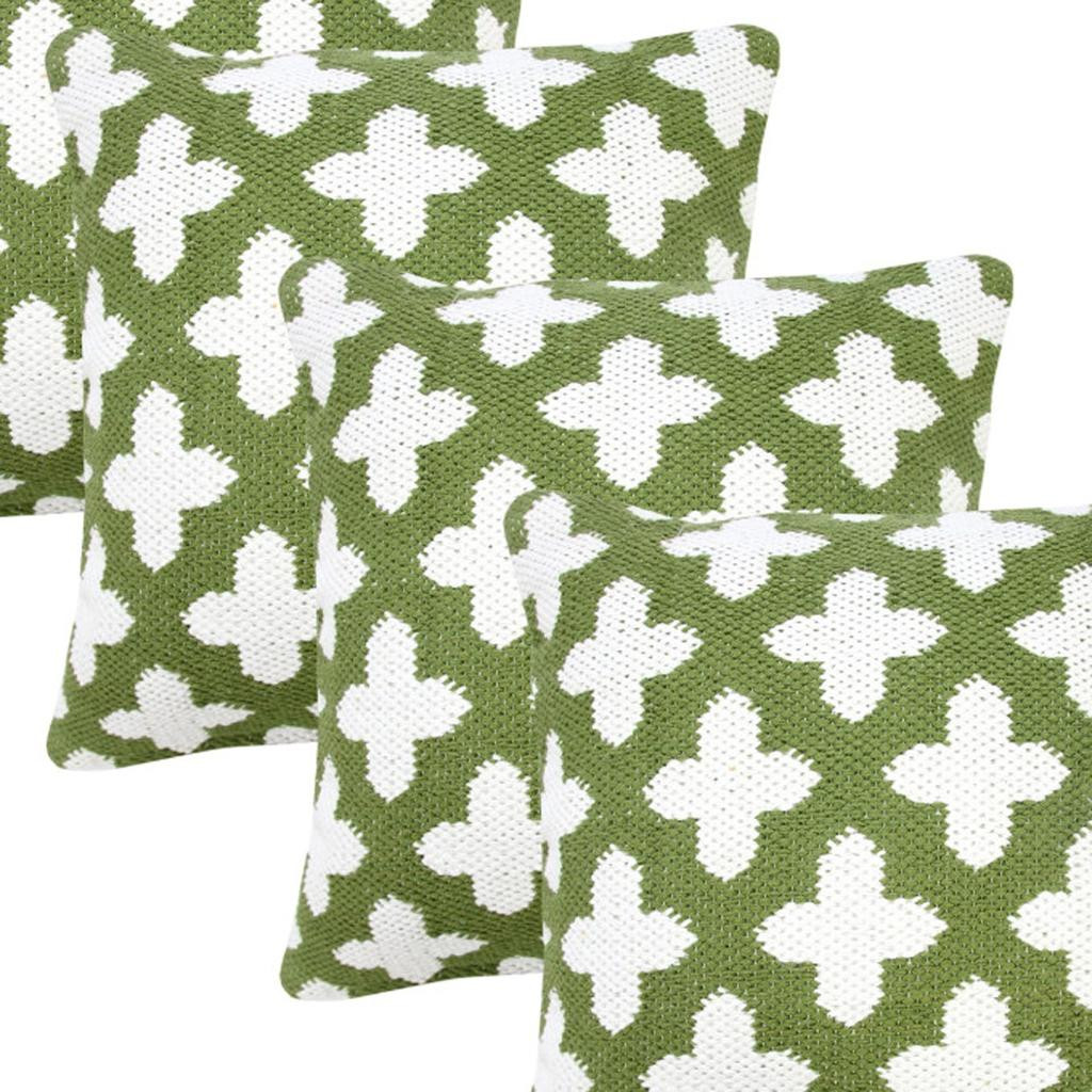 The set of four 20-inch green and white geometric cotton blend throw pillow covers is the perfect decorative accessory for your home. Ultra durable green and white cotton blend has been used to make this decorative pillow cover set a beautiful look that will stand the test of time. Decorative pillow covers are a great way to change up the look and feel of your space easily and quickly. Combine with your own fill or insert to add decoration and dimension to your favorite chair, accent your sofa, or to use as part of your bed ensemble. 20.00-inch h x 20.00-inch w x 0.25-inch d.