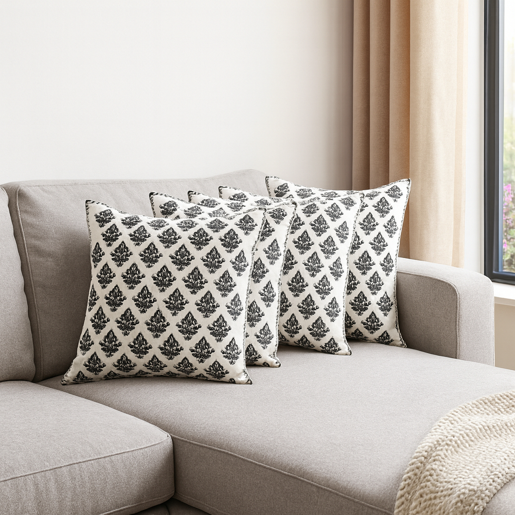 Add an air of fashion to your room and rejuvenate the space with this cute and fashionable set of four 20-inch white and black geometric cotton throw pillow covers. This white and black colored decorative pillow cover set is made from high grade cotton that is durable and soft to the touch. Pillow covers are a good idea for anyone that loves to decorate or accent their space with color and texture. Combine with your own fill or insert to add decoration and dimension to your favorite chair, accent your sofa, or to use as part of your bed ensemble. 20.00-inch h x 20.00-inch w x 0.25-inch d.
