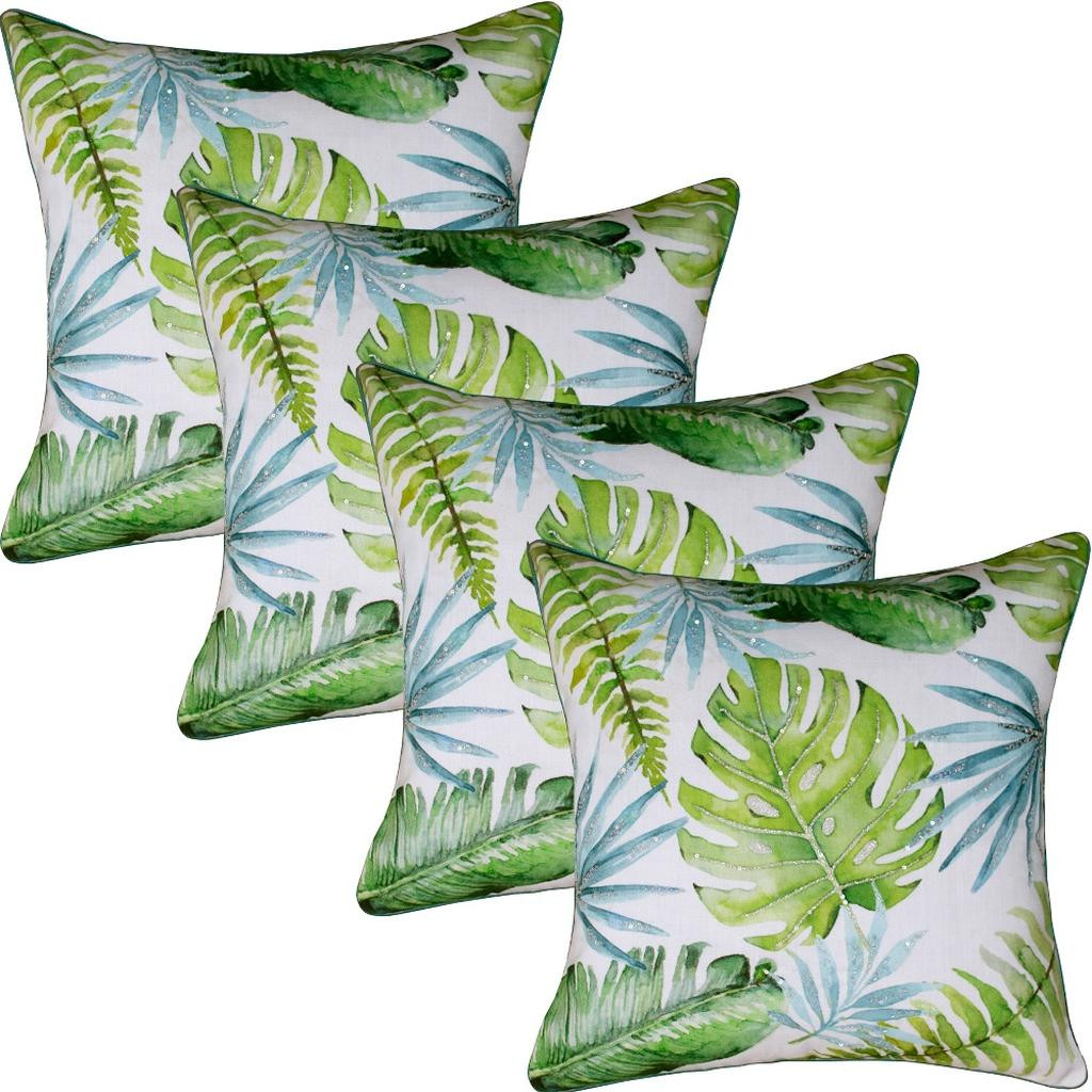 This set of four 20-inch green and blue floral throw pillow covers will add a beautiful decorative accent to your decor. This green and blue colored decorative pillow cover set is made from high grade polyester that is durable and soft to the touch. Decorative pillow covers are a great way to change up the look and feel of your space easily and quickly. Combine with your own fill or insert to add decoration and dimension to your favorite chair, accent your sofa, or to use as part of your bed ensemble. 20.00-inch h x 20.00-inch w x 0.25-inch d.