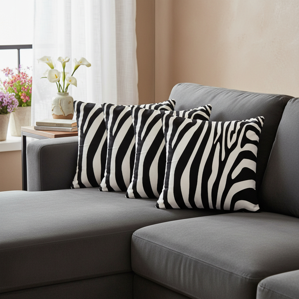 The perfect complement to your sofa, favorite chair, or bed, this set of four 20-inch black and white throw pillow covers is a great decorative accent. The black and white coloring of the extremely durable and long lasting polyester pillow covers will add dimension and texture to your space. Pillow covers are a good idea for anyone that loves to decorate or accent their space with color and texture. Combine with your own fill or insert to add decoration and dimension to your favorite chair, accent your sofa, or to use as part of your bed ensemble. 20.00-inch h x 20.00-inch w x 0.25-inch d.