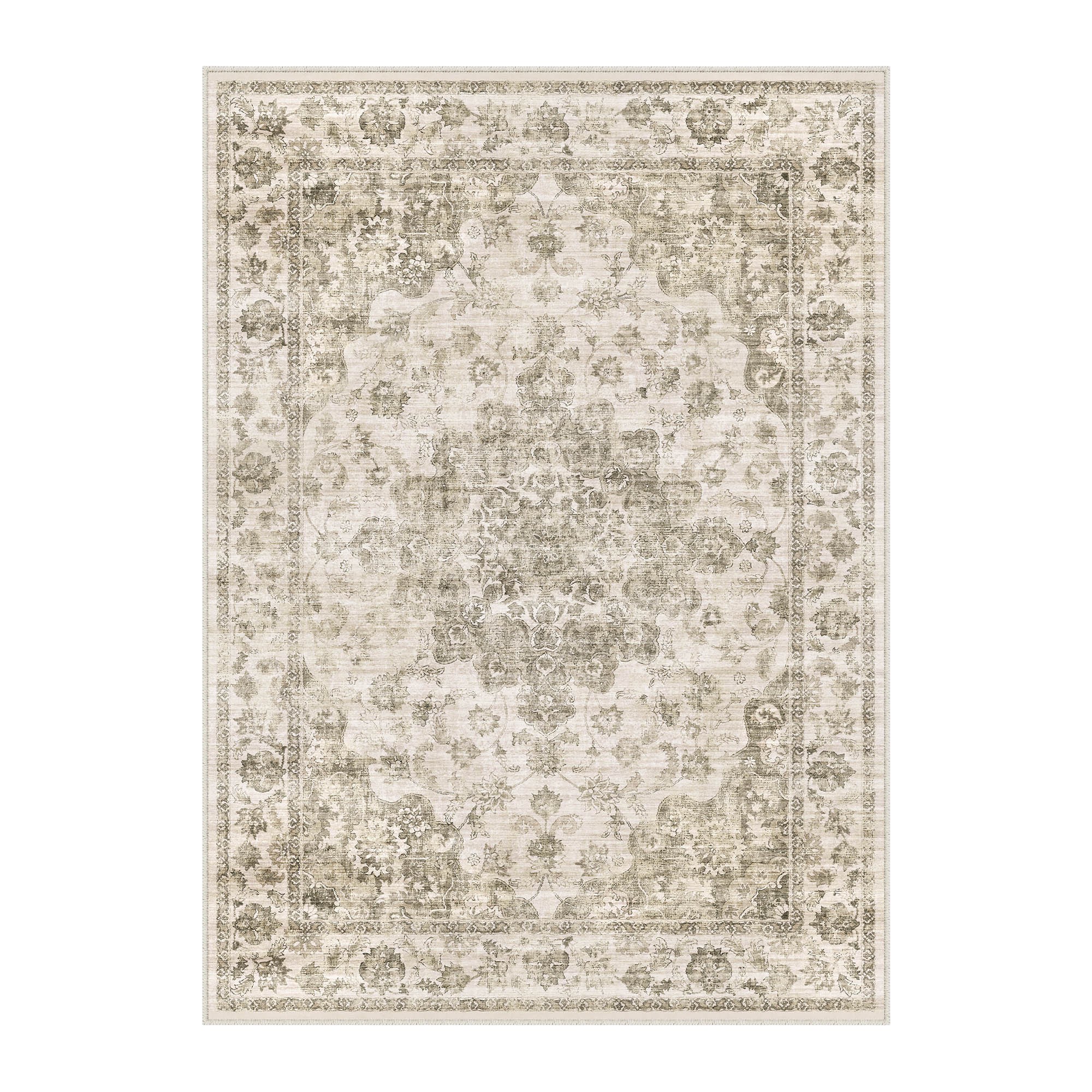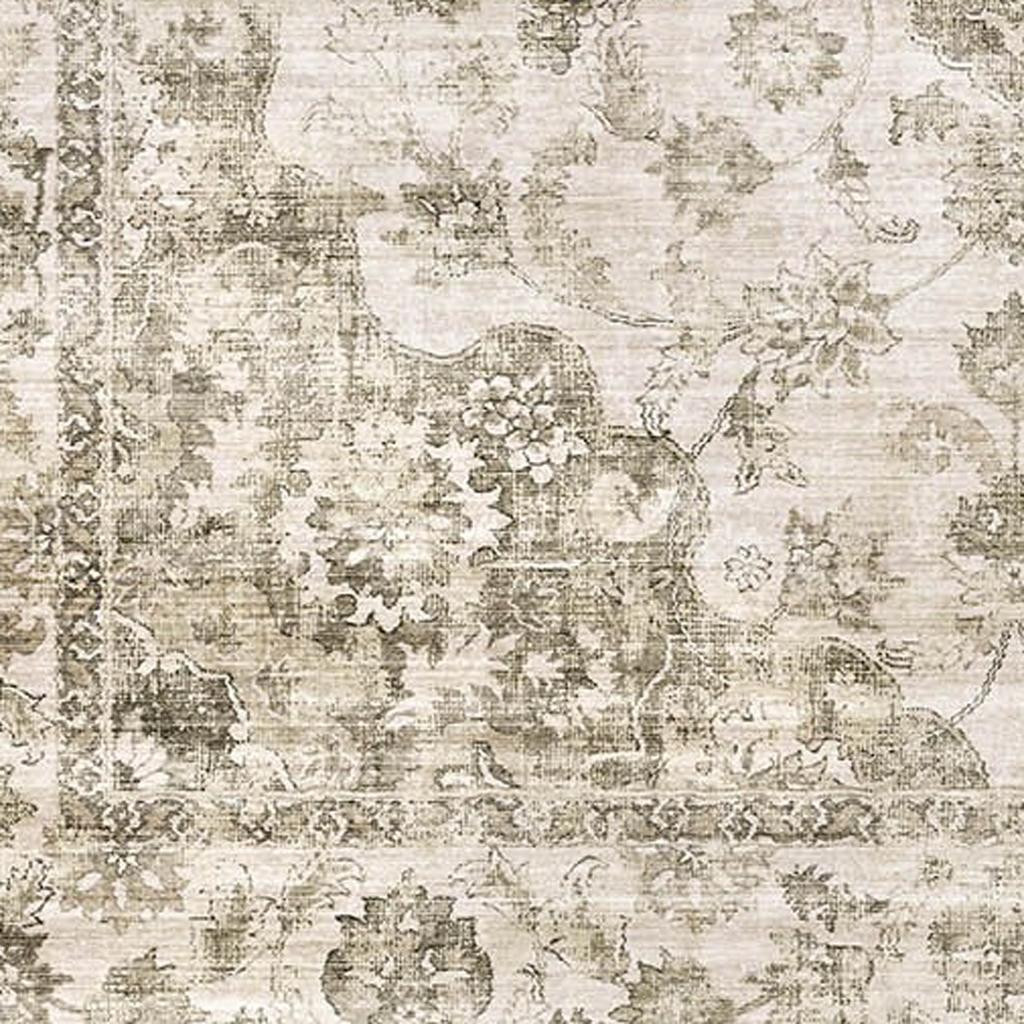 5' X 7' Brown And Beige Floral Medallion Washable Area Rug
