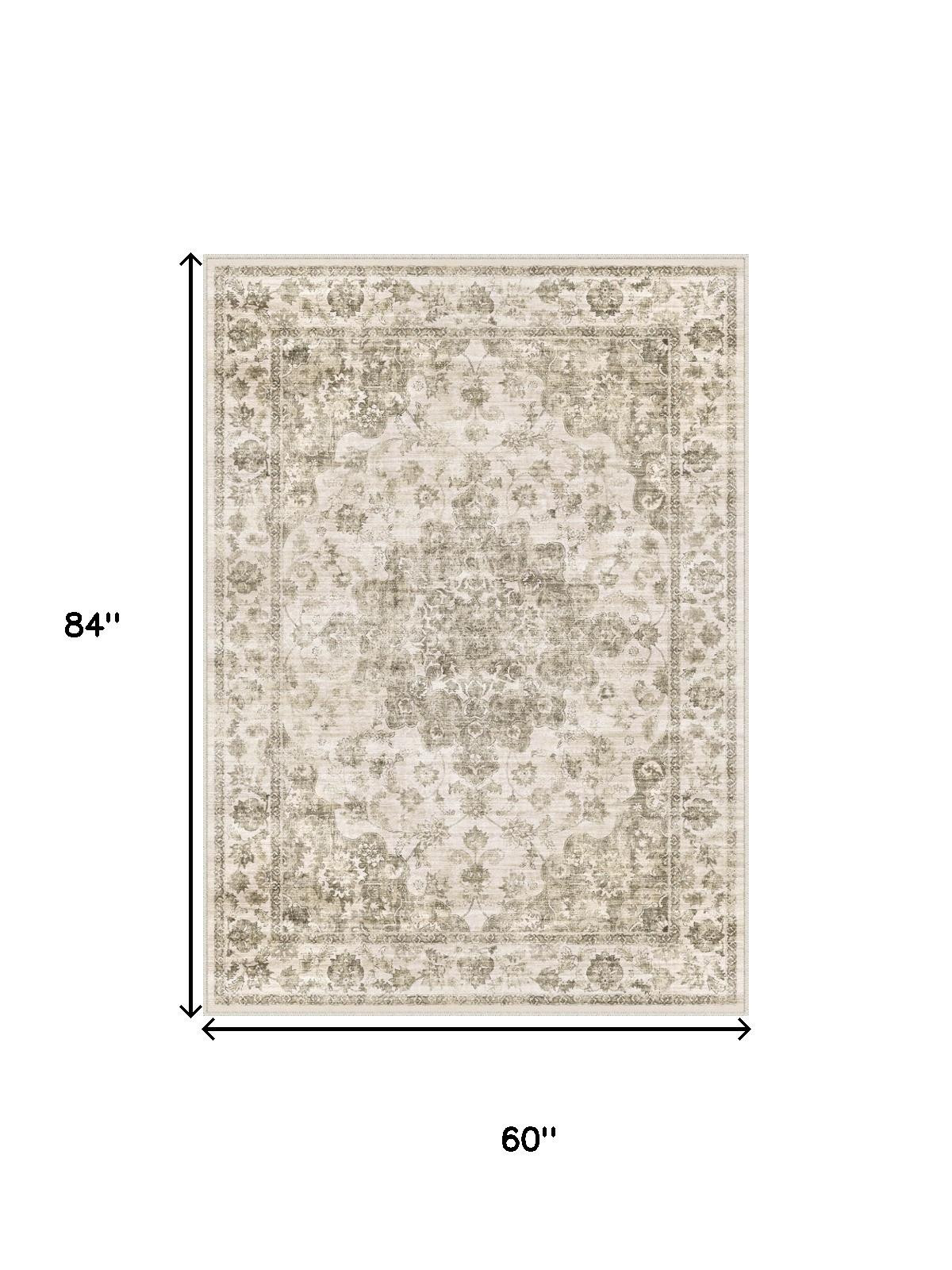 Add some artistry to your room with this 5-foot x 7-foot brown and red floral washable area rug. Ideal for spaces with kids and pets, this rug is stain resistant to help repel dirt and spilled liquids. Built to last, this rug crafted from polyester fibers is known for its durability and long lasting appeal. Rugs are a great way to showcase your style, hide imperfections, warm your home and reduce noise. This larger sized, traditional styled rug is ready to create a focal point or statement piece in your room. 84.00-inch h x 60.00-inch w x 0.30-inch d.