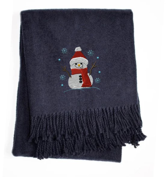 This 55-inch x 70-inch navy bluecotton blend woven snowman embroidered throw blanket with fringe is the best (and most stylish) way to wrap you and your loved ones in the epitome of cozy all year long. This ultra-soft plush blanket is designed for ultimate softness. Featuring beautiful embroidery, this embellished throw is of the highest quality and design. This woven throw offers sumptuous softness and texture that you'll cherish for years to come. Made from cotton blend this blanket will make a great addition to any room it's added to. Perfect for your favorite chair, bed or lounging on the couch, this blanket helps bring a warm and fashionable flair to your space. 70.00-inch h x 55.00-inch w x 1.00-inch d.