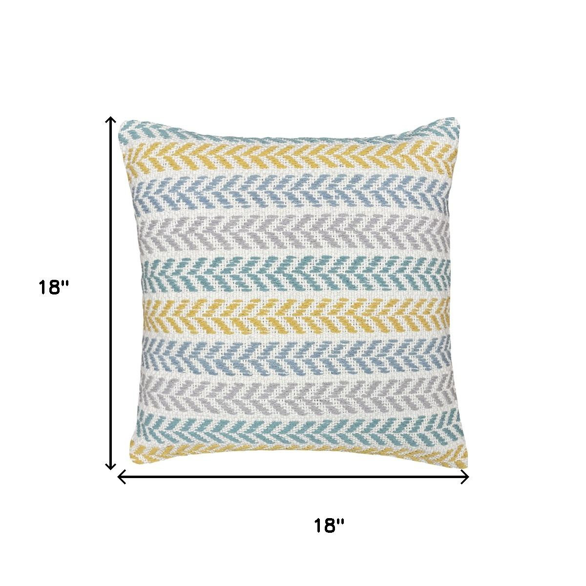 The 18-inch yellow and blue beach chevron cotton throw pillow cover is the perfect decorative accessory for your home. This yellow and blue hued, accent pillow cover, represents quality construction, expertly made from durable cotton that is not only long lasting but soft to the touch as well. Pillow covers are a good idea for anyone that loves to decorate or accent their space with color and texture. Combine with your own fill or insert to add decoration and dimension to your favorite chair, accent your sofa, or to use as part of your bed ensemble. 18.00-inch h x 18.00-inch w x 1.00-inch d.